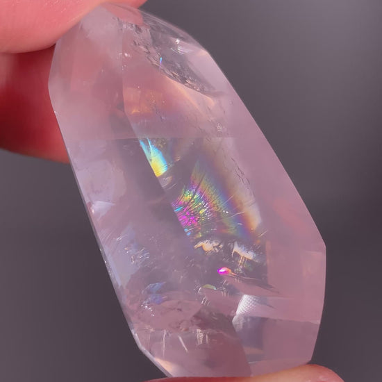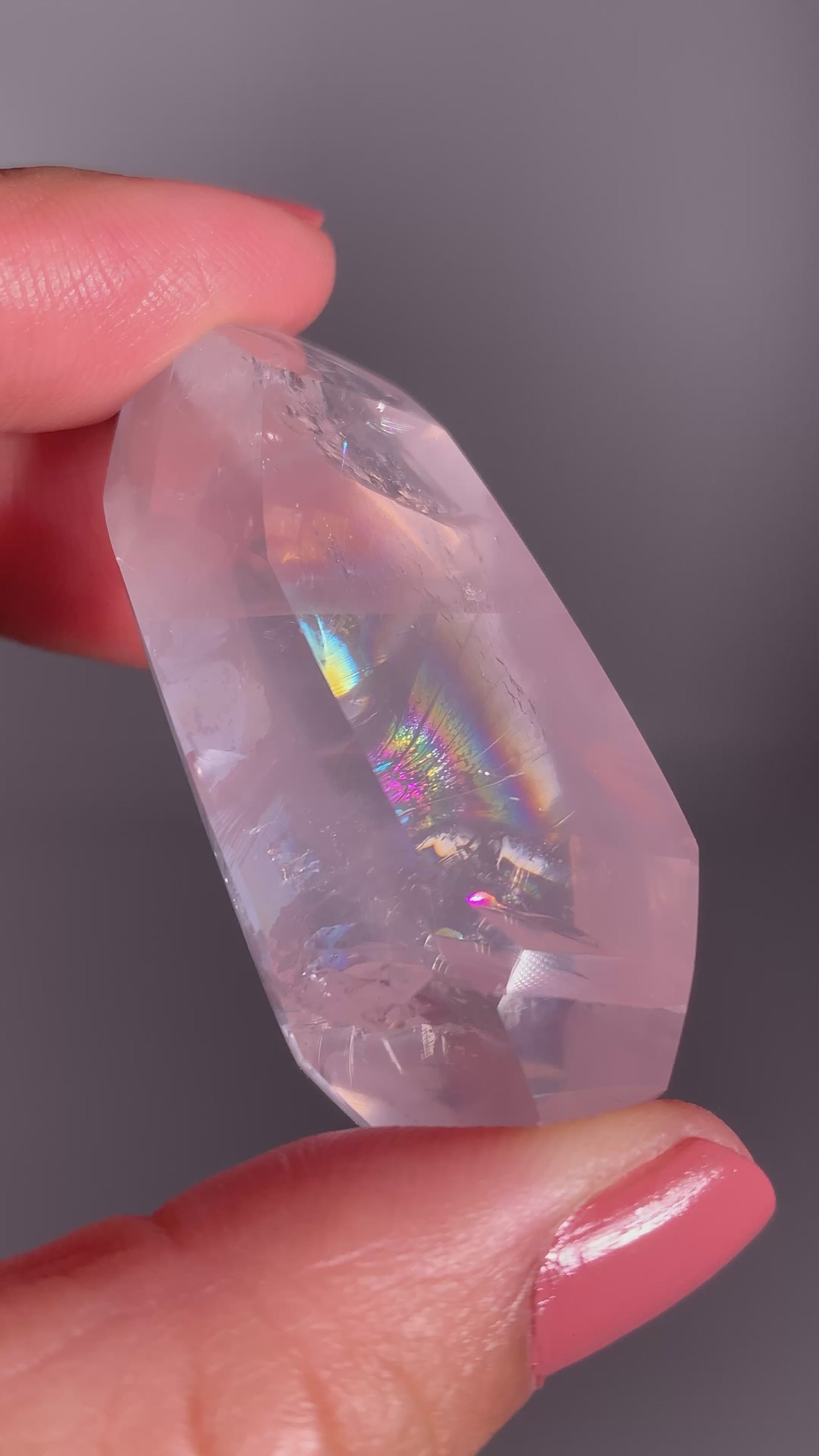 This high-quality Rose Quartz polished freeform from Brazil features gentle blush tones with beautiful natural rainbows that appear as the light moves. Finely polished to highlight its clarity and glow, the tower shape enhances its natural elegance and reflective depth. A lovely Brazilian rose quartz piece that feels both calming and visually captivating—perfect for display or collection.