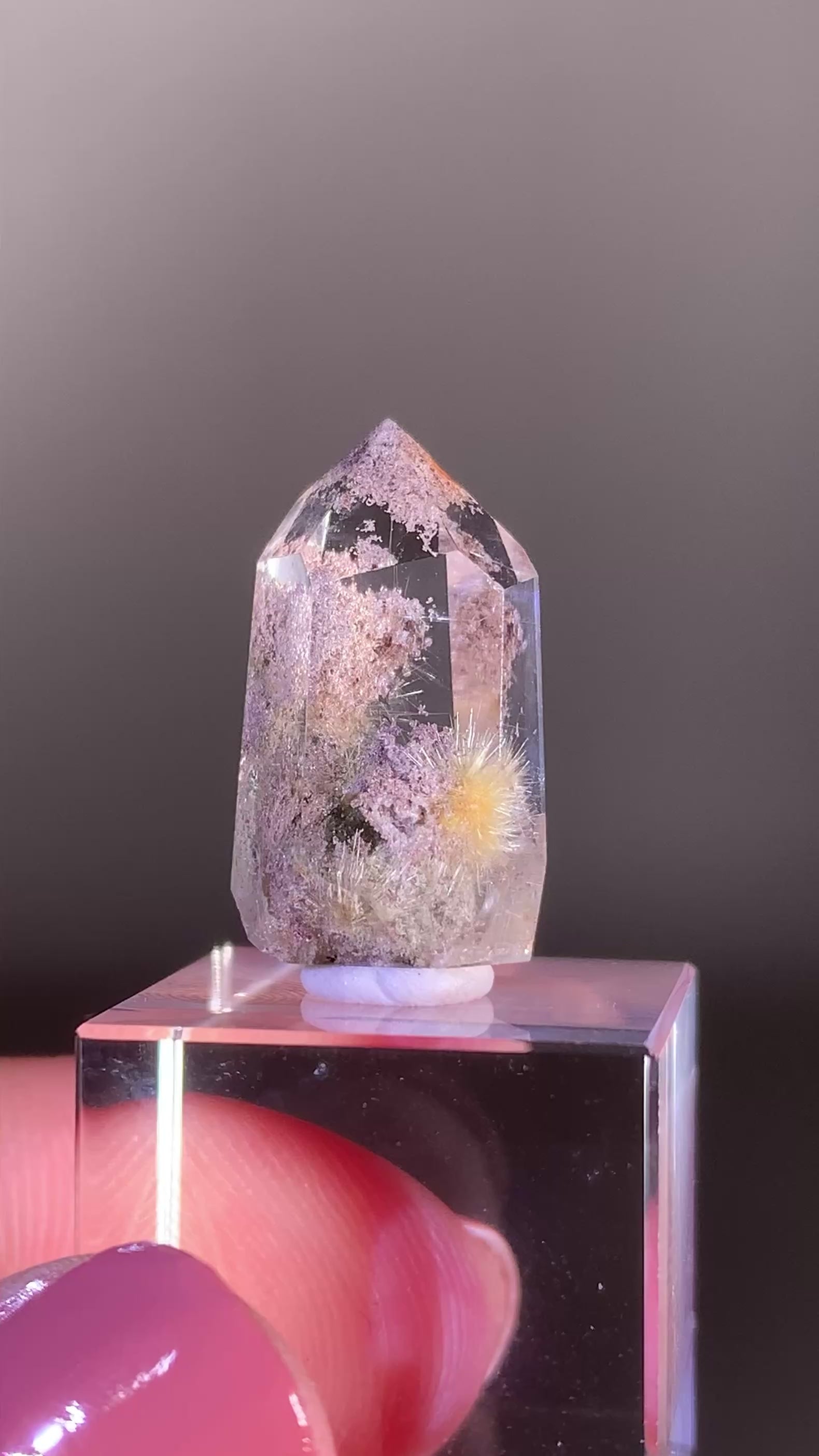 High-Quality Rutile Flower Quartz with Pink & Purple Garden & Manifestation Inclusions Polished Freeform from Brazil