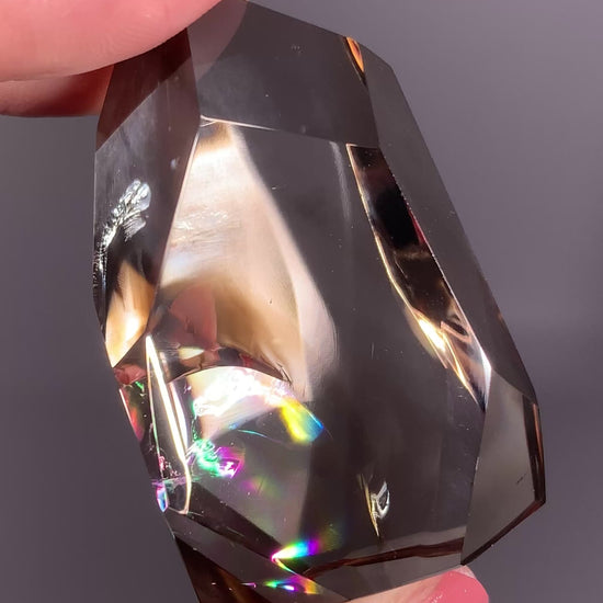 This high-quality Smoky Quartz from Brazil features rich, transparent smoky tones with beautiful natural rainbows that shimmer as the light hits.