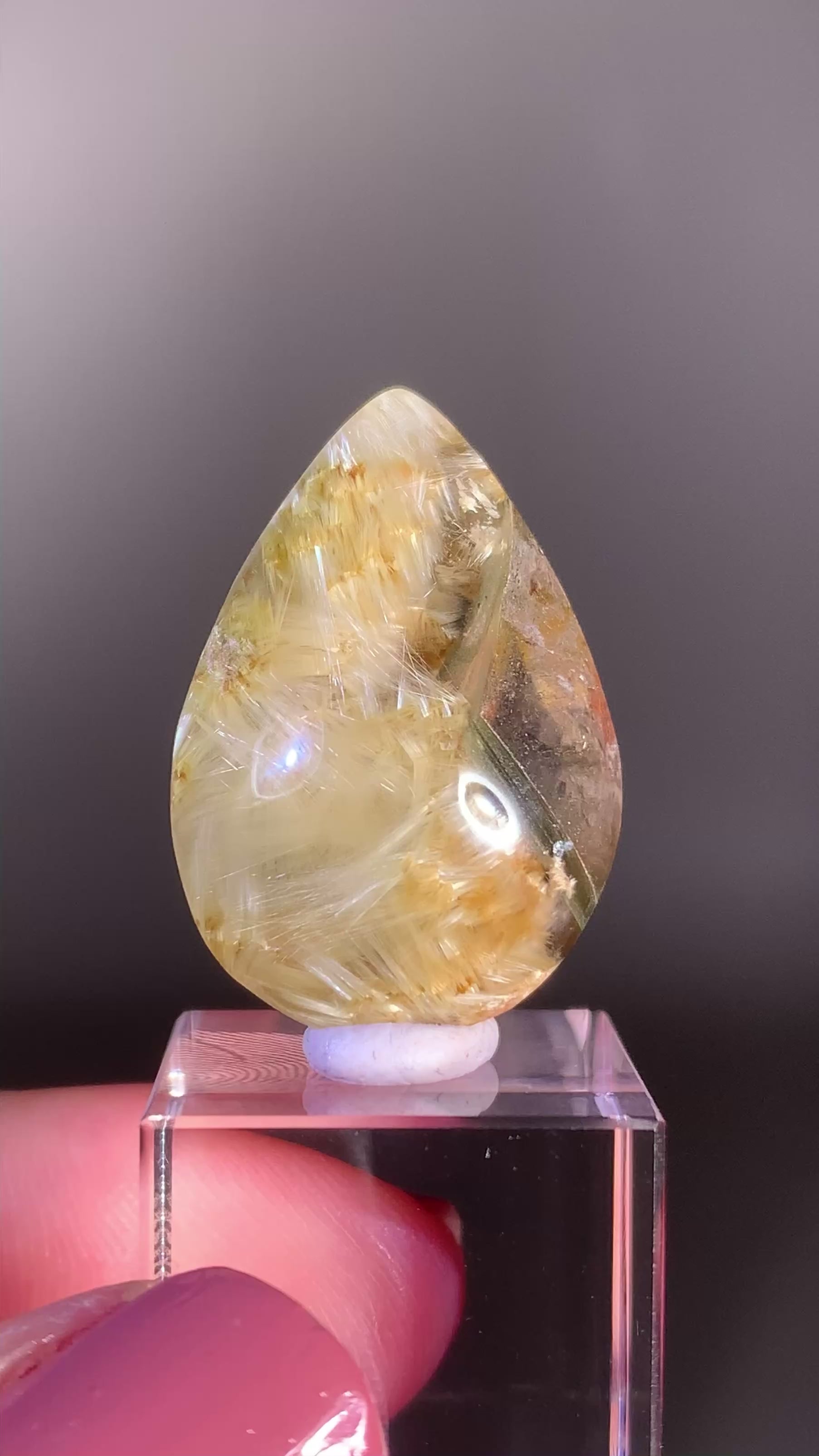 High-Quality Unique Gold Rutilated Quartz with Green & Pink Garden Inclusions | Polished Teardrop Crystal