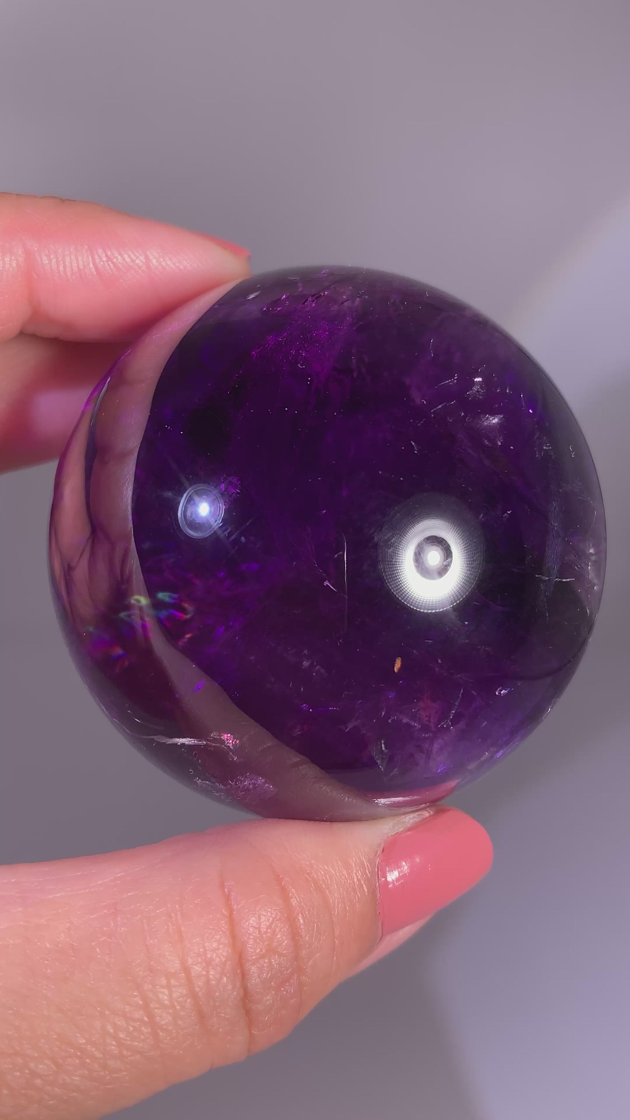Gem crystal amethyst sphere from Brazil featuring excellent clarity and a natural rainbow. A polished natural crystal ideal for collectors, display, or gifting.