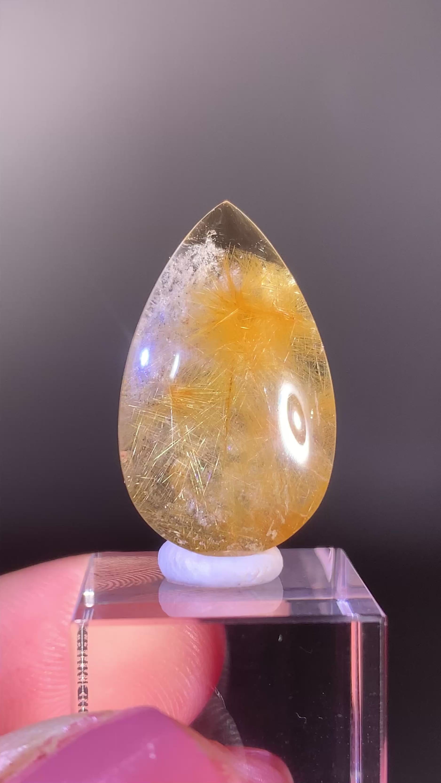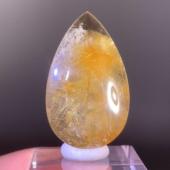 A large, high-quality gold rutilated quartz cabochon with beautiful cream color garden inclusions. Perfect size and shape for making a statement pendant.