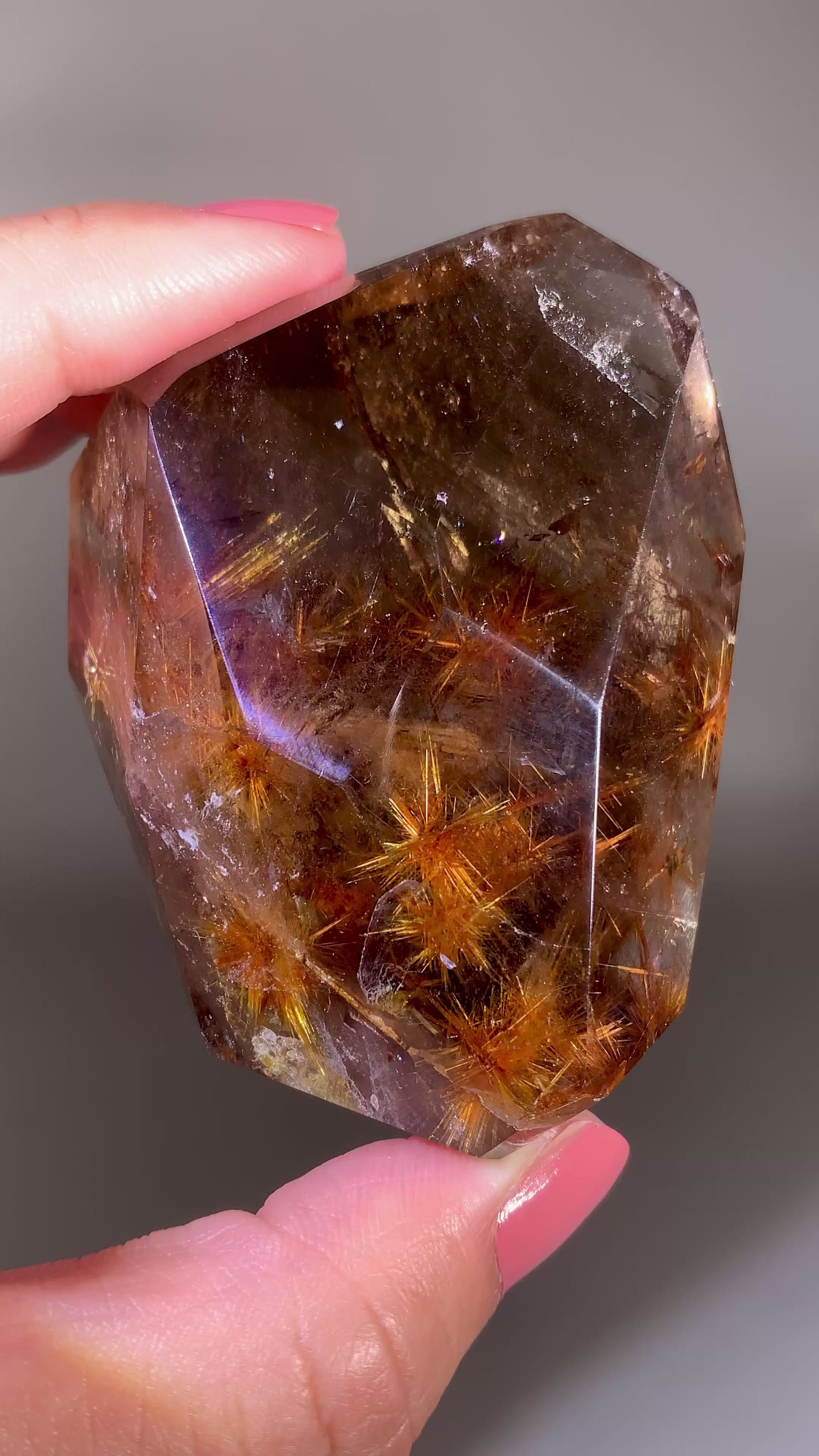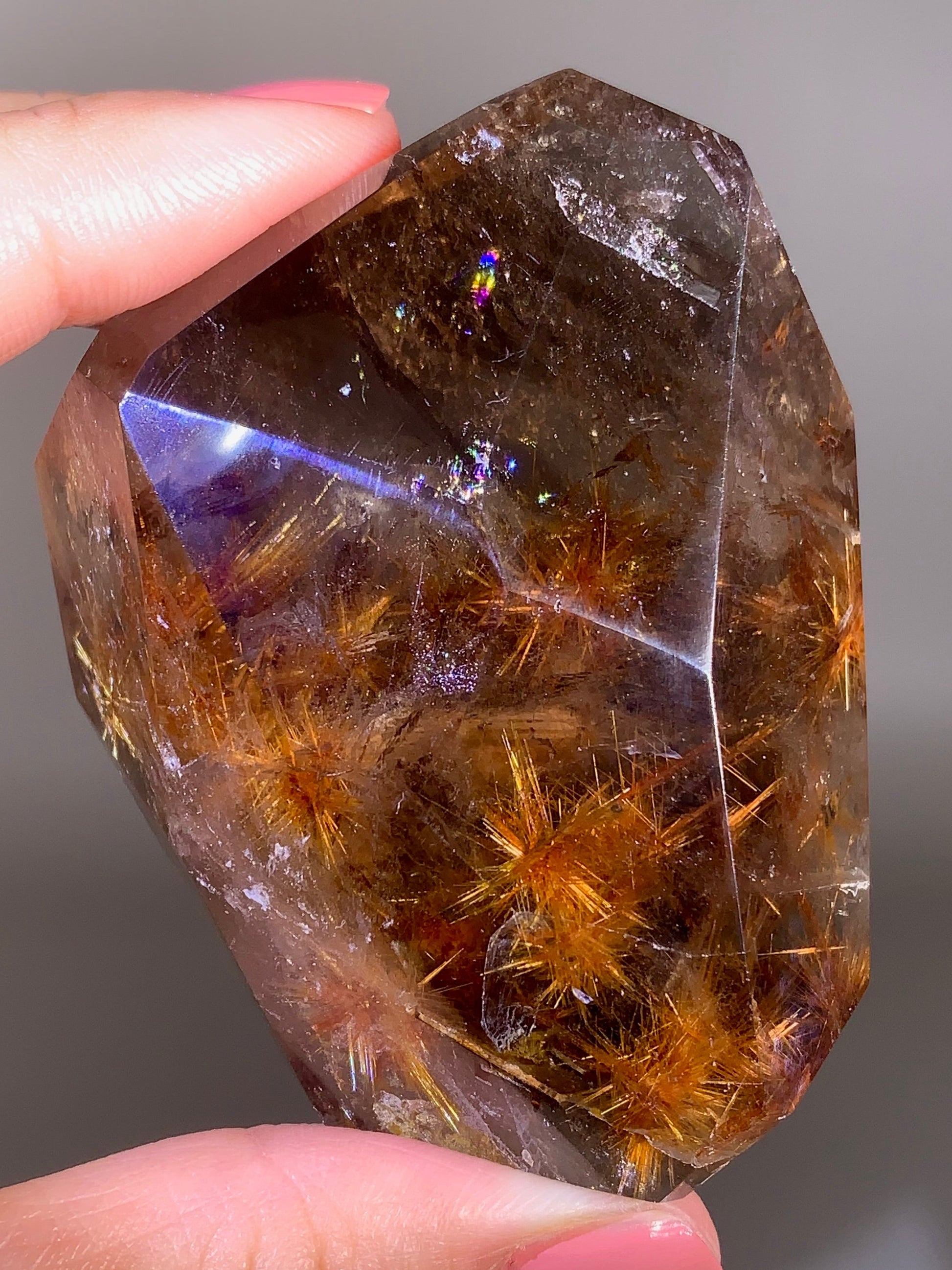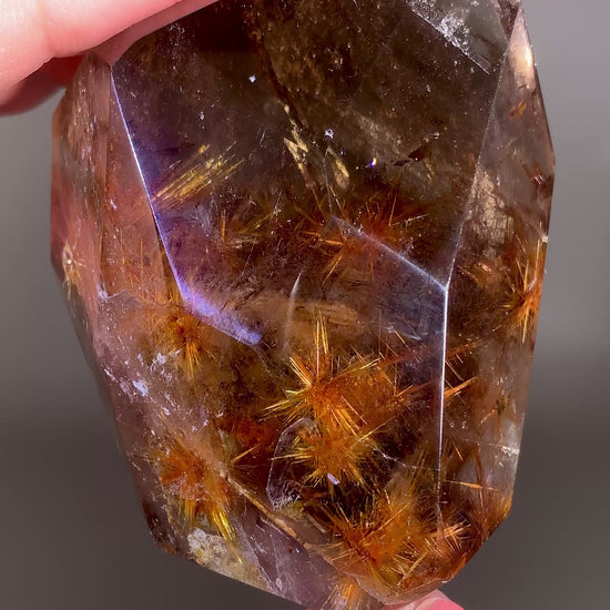 Large Starburst Rutile with Mica in Smoky Quartz Polished Freeform from Brazil
