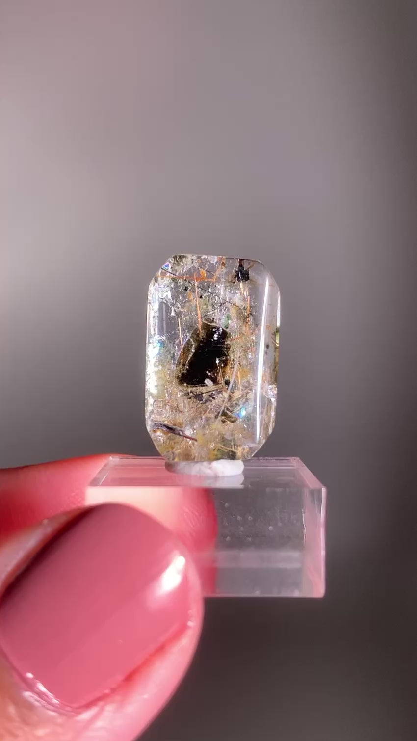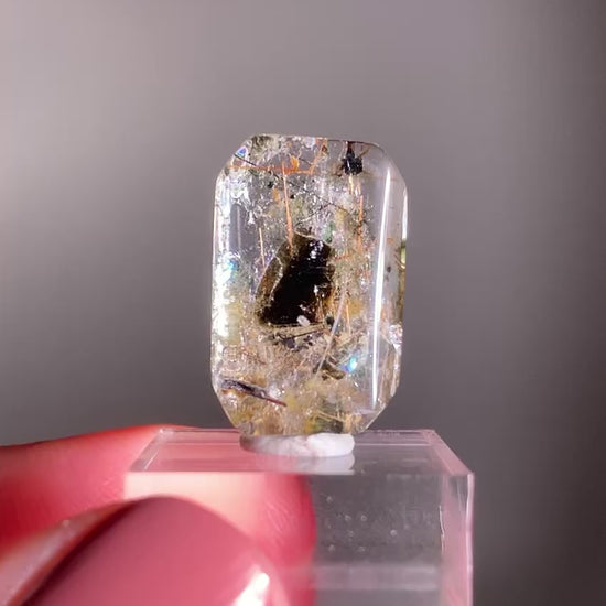 A exquisite polished crystal featuring vibrant red copper rutile needles intertwined with sparkling mica inclusions. This rare combination enhances grounding energy, vitality, and confidence, while adding a beautiful metallic shimmer to your collection.