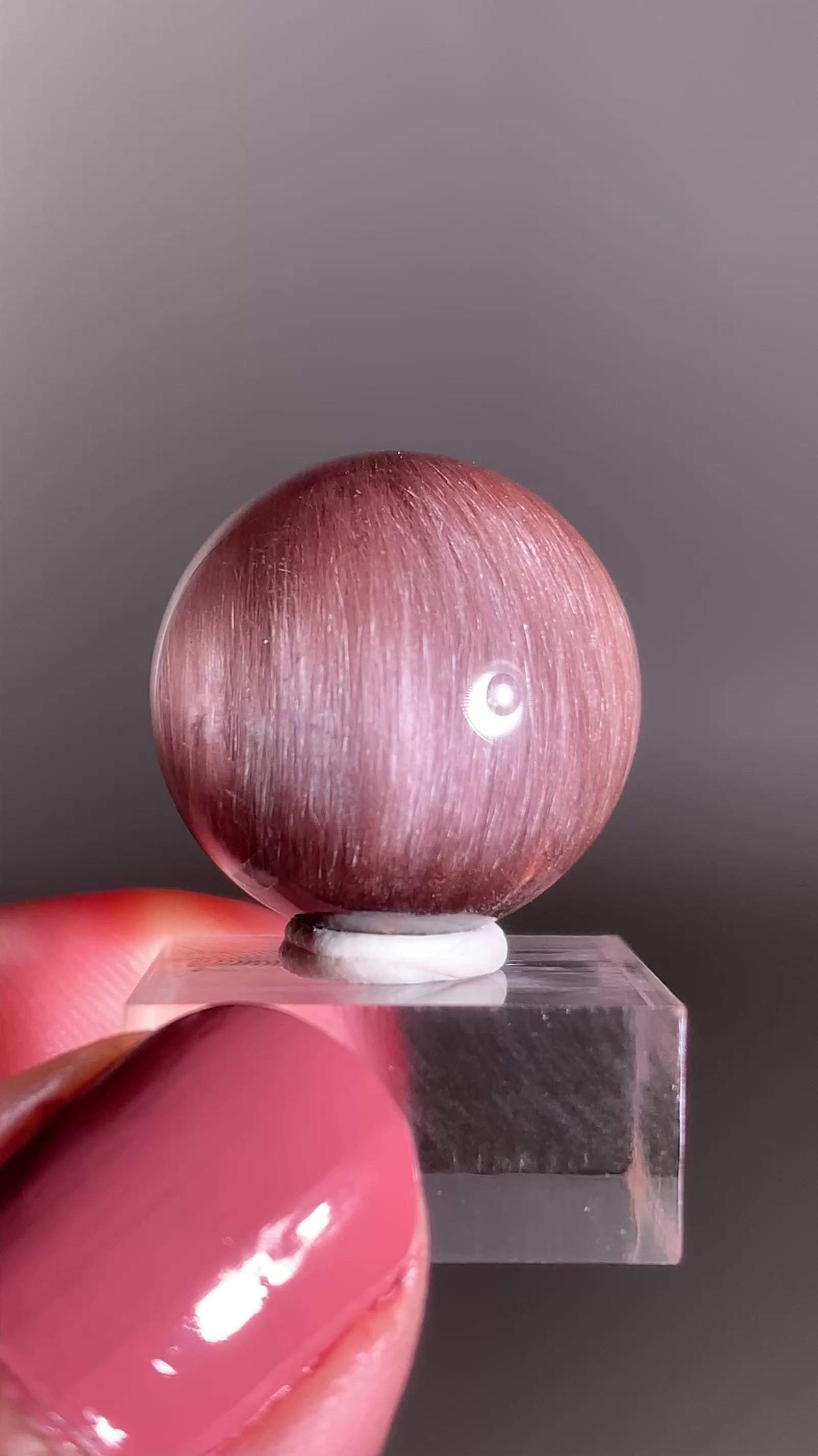 This Pinkish-Purple Amphibole Sphere from Brazil displays dreamy blush tones and soft, cloud-like inclusions that glow under the light. Expertly hand-polished to reveal its silky depth and natural beauty, this rare collector’s crystal radiates gentle, calming energy and pure elegance.