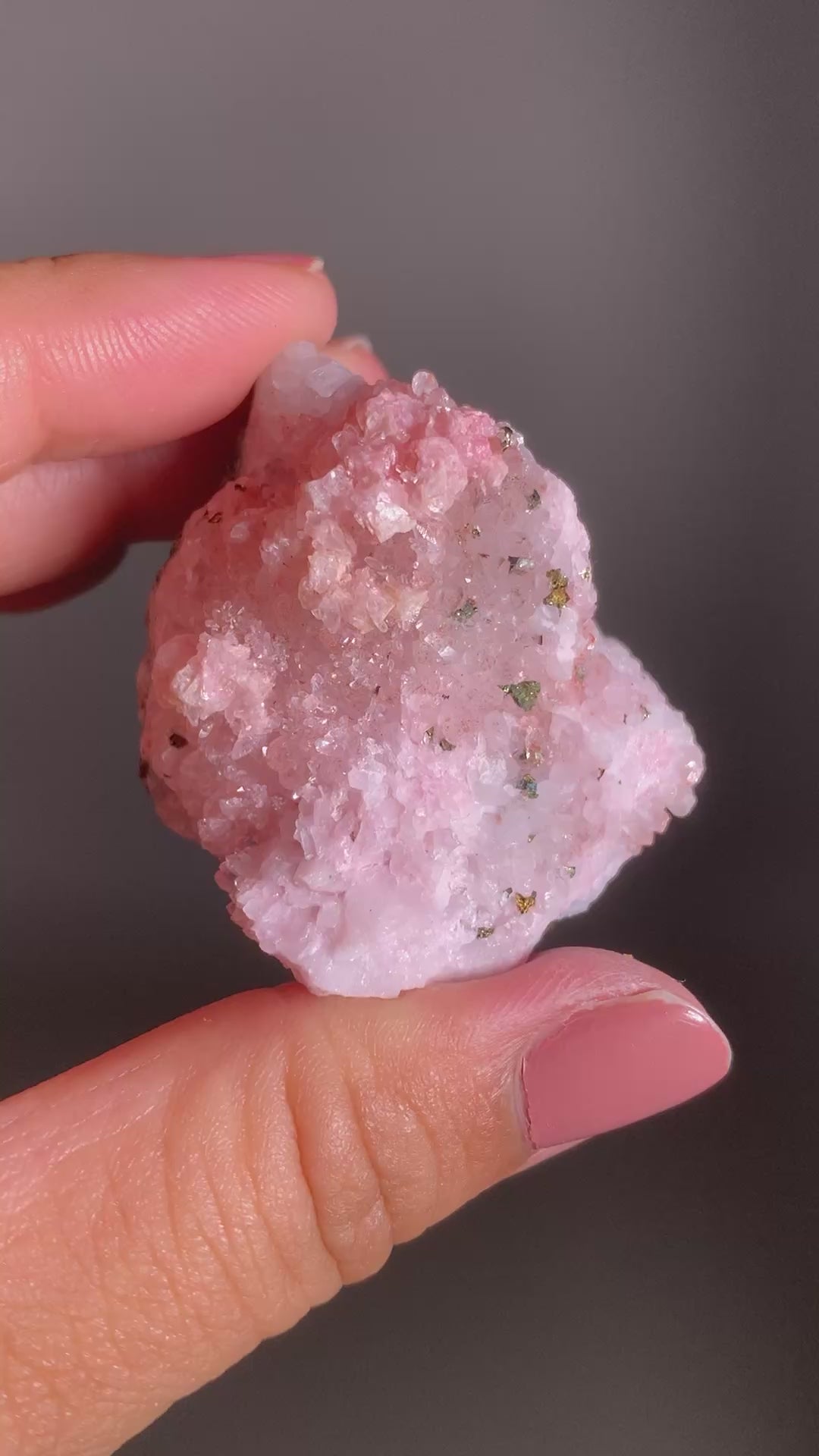 Beautiful Pink Dolomite on Quartz with sparkling Pyrite accents – a rare mineral specimen for collectors and crystal lovers. Featuring soft pink Dolomite crystals on a Quartz matrix, sprinkled with golden Pyrite for a unique aesthetic and powerful energy. Perfect for display, healing, and high-vibration décor.