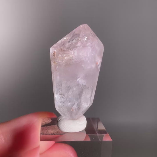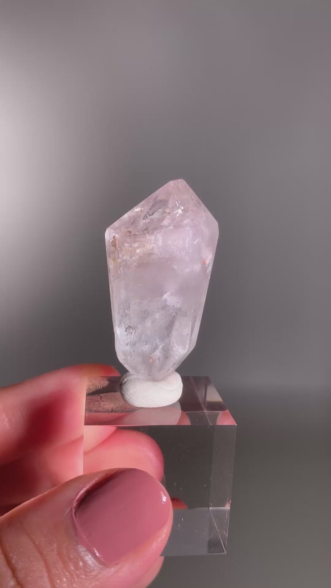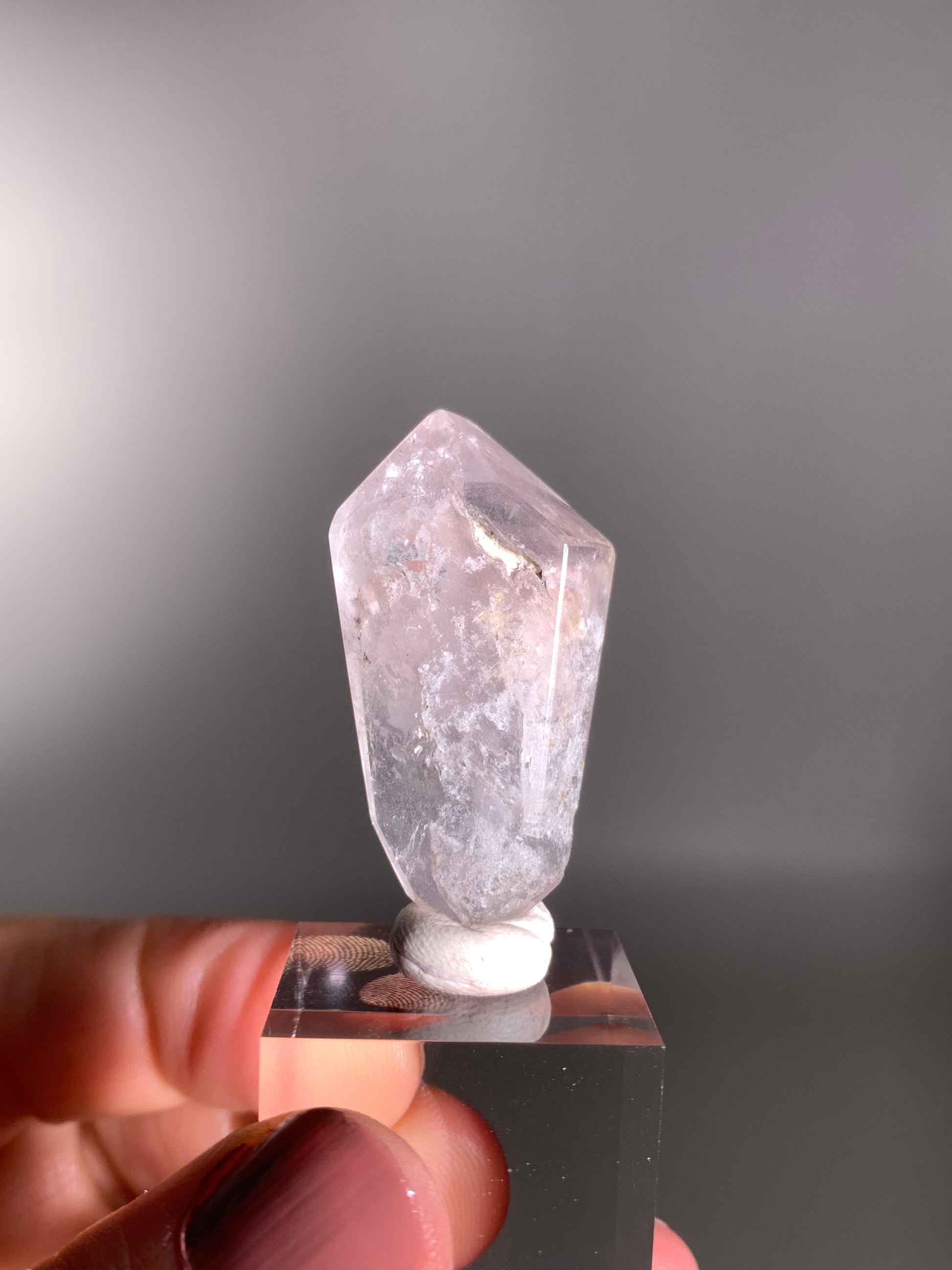 A Garden Quartz freeform from Brazil featuring soft pink lithium inclusions in clear quartz, forming a serene, layered landscape with gentle calming energy.