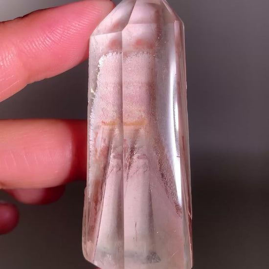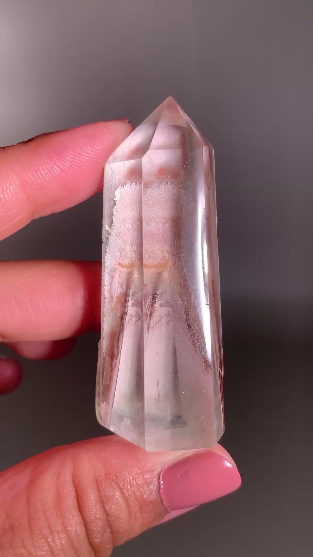 This Pink Phantom semi-polished point from Brazil showcases beautiful natural inclusions with soft pink hues. The back is left raw to preserve the beauty of the polished front, making it a unique collector’s crystal that combines raw charm with a refined finish.