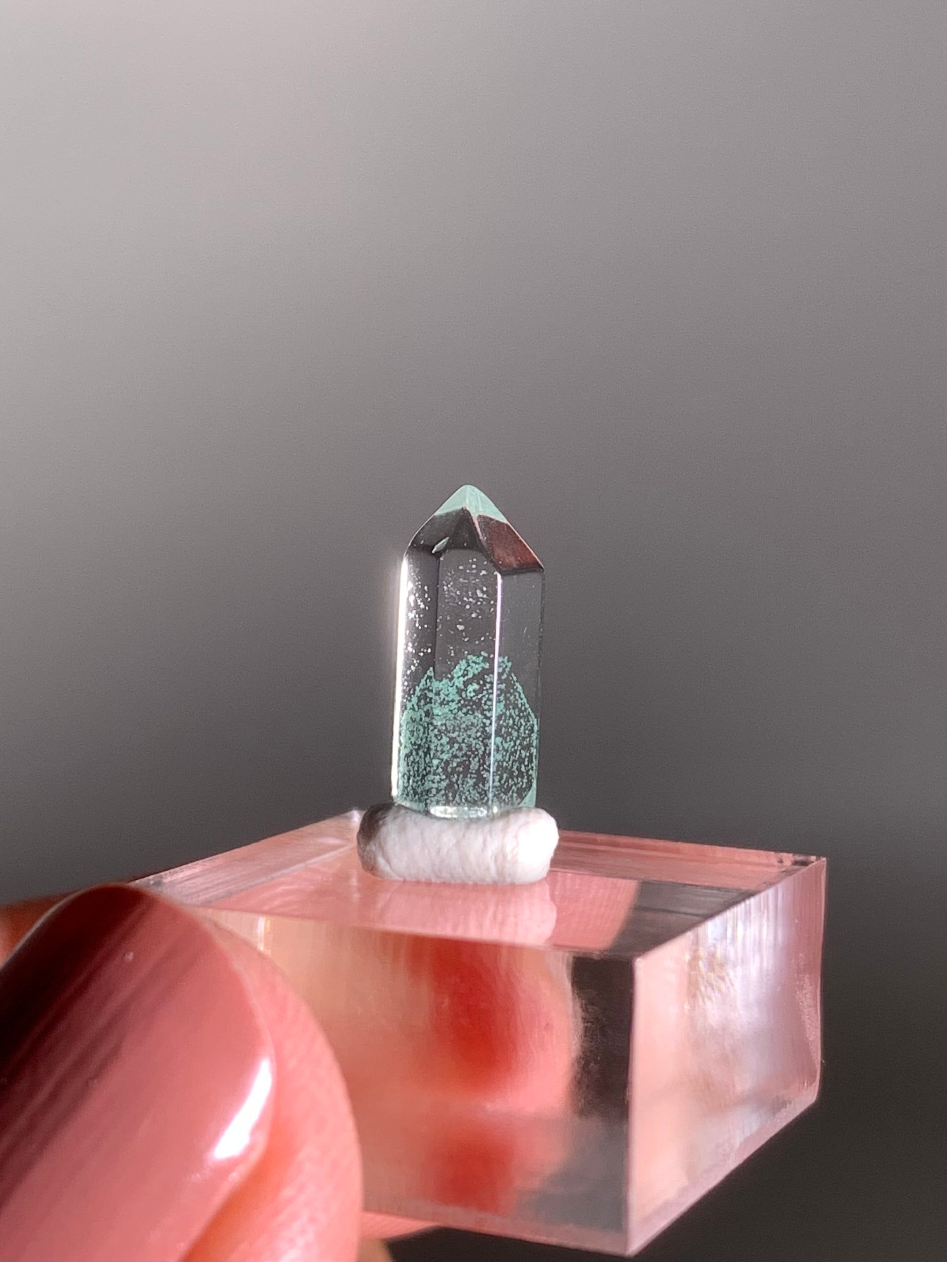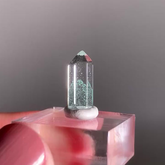 A rare and exquisite crystal, this polished phantom quartz tower from Madagascar features a unique Tiffany Blue hue—a soft, pastel aqua rarely seen in quartz. This exceptionally rare coloration is found only in select deposits from Madagascar. Natural phantom formations within the stone reveal ghost-like layers of earlier crystal growth, creating stunning visual depth. Highly sought after for both its beauty and rarity, this piece is ideal for collectors and crystal enthusiasts alike.