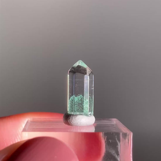 A rare and exquisite crystal, this polished phantom quartz tower from Madagascar features a unique Tiffany Blue hue—a soft, pastel aqua rarely seen in quartz. This exceptionally rare coloration is found only in select deposits from Madagascar. Natural phantom formations within the stone reveal ghost-like layers of earlier crystal growth, creating stunning visual depth. Highly sought after for both its beauty and rarity, this piece is ideal for collectors and crystal enthusiasts alike.