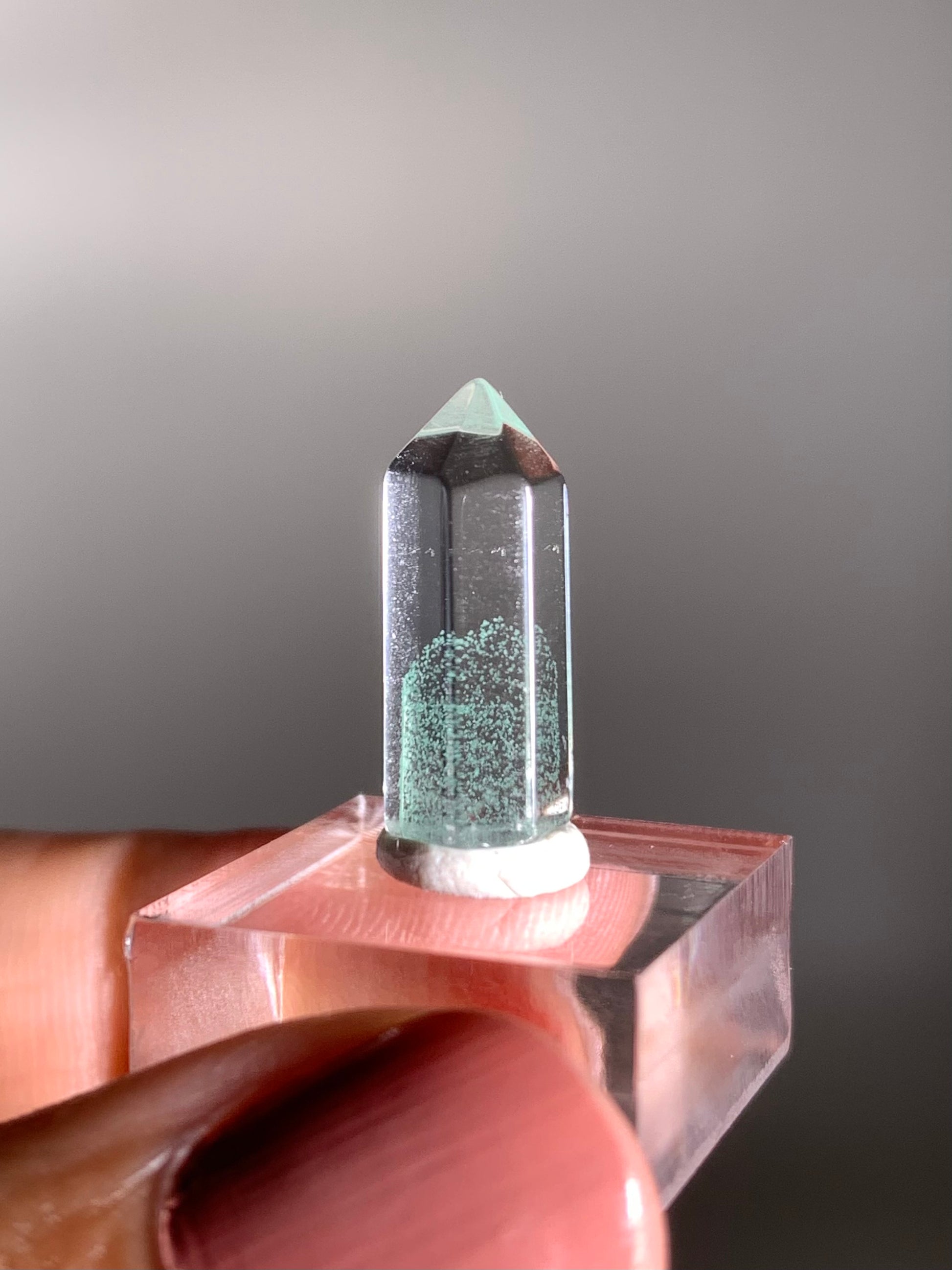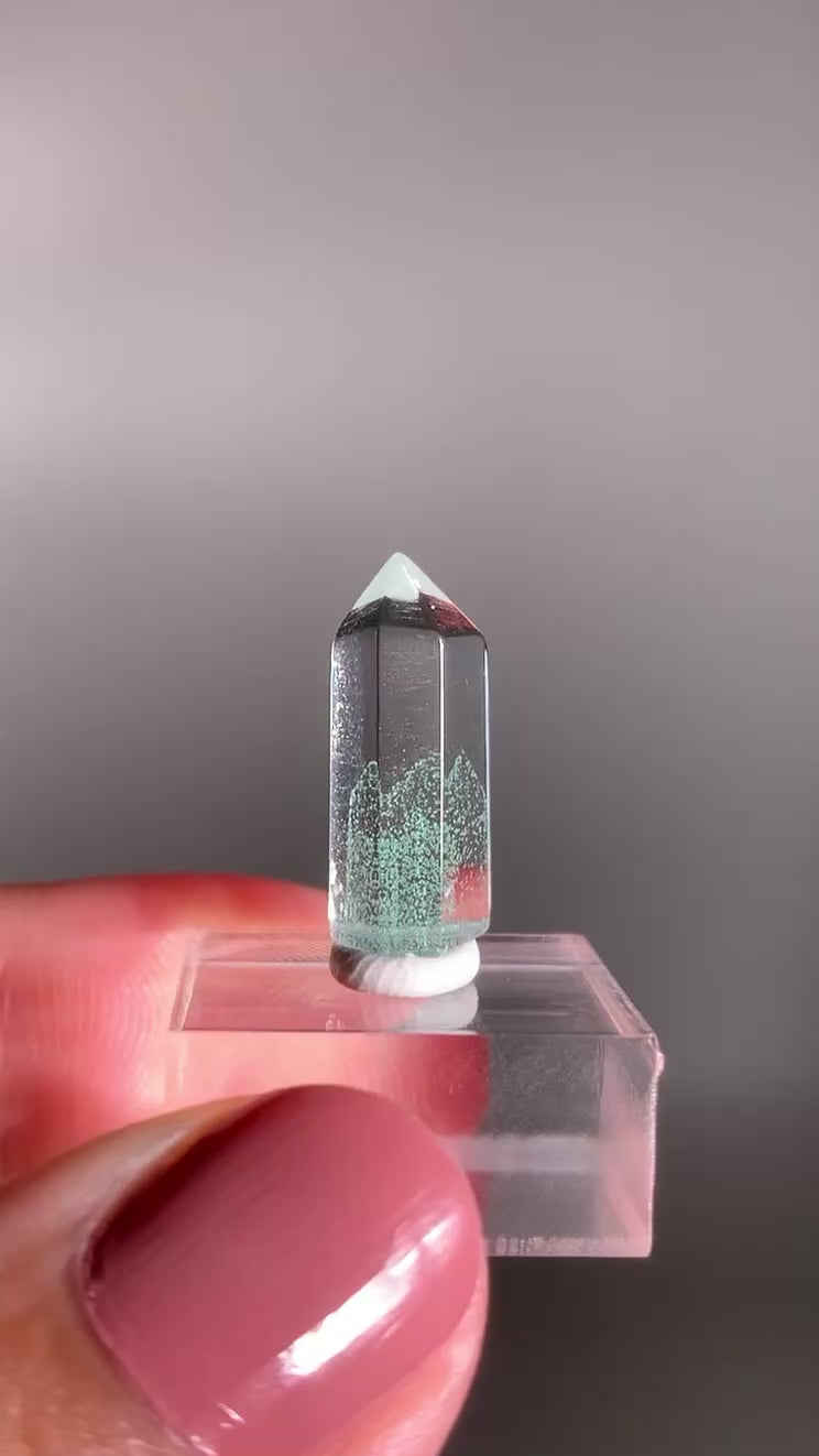 A rare and exquisite crystal, this polished phantom quartz tower from Madagascar features a unique Tiffany Blue hue—a soft, pastel aqua rarely seen in quartz. This exceptionally rare coloration is found only in select deposits from Madagascar. Natural phantom formations within the stone reveal ghost-like layers of earlier crystal growth, creating stunning visual depth. Highly sought after for both its beauty and rarity, this piece is ideal for collectors and crystal enthusiasts alike.