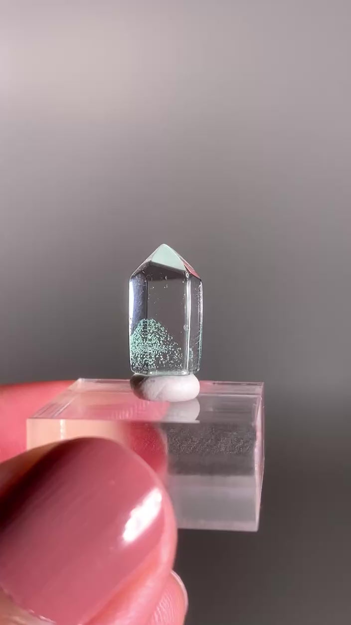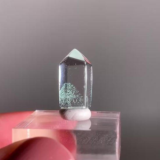 A rare and exquisite crystal, this polished phantom quartz tower from Madagascar features a unique Tiffany Blue hue—a soft, pastel aqua rarely seen in quartz. This exceptionally rare coloration is found only in select deposits from Madagascar. Natural phantom formations within the stone reveal ghost-like layers of earlier crystal growth, creating stunning visual depth. Highly sought after for both its beauty and rarity, this piece is ideal for collectors and crystal enthusiasts alike.
