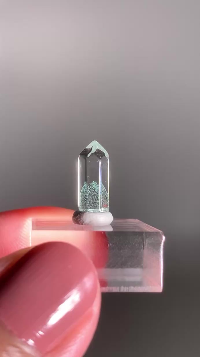 A rare and exquisite crystal, this polished phantom quartz tower from Madagascar features a unique Tiffany Blue hue—a soft, pastel aqua rarely seen in quartz. This exceptionally rare coloration is found only in select deposits from Madagascar. Natural phantom formations within the stone reveal ghost-like layers of earlier crystal growth, creating stunning visual depth. Highly sought after for both its beauty and rarity, this piece is ideal for collectors and crystal enthusiasts alike.