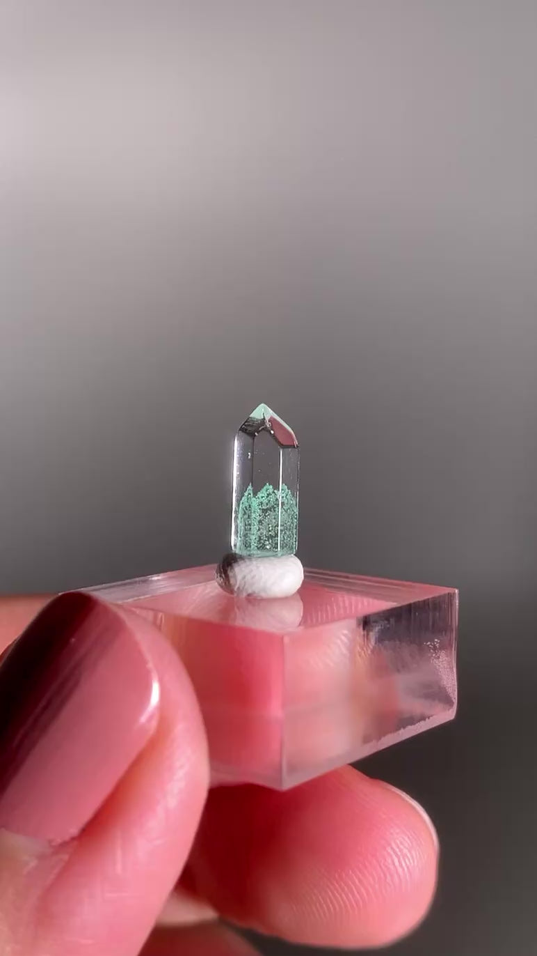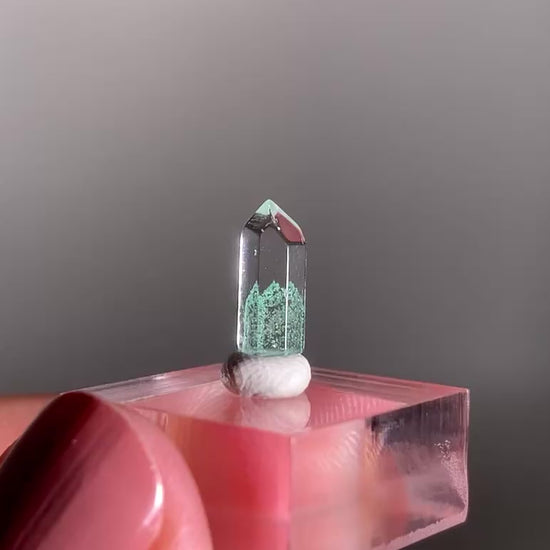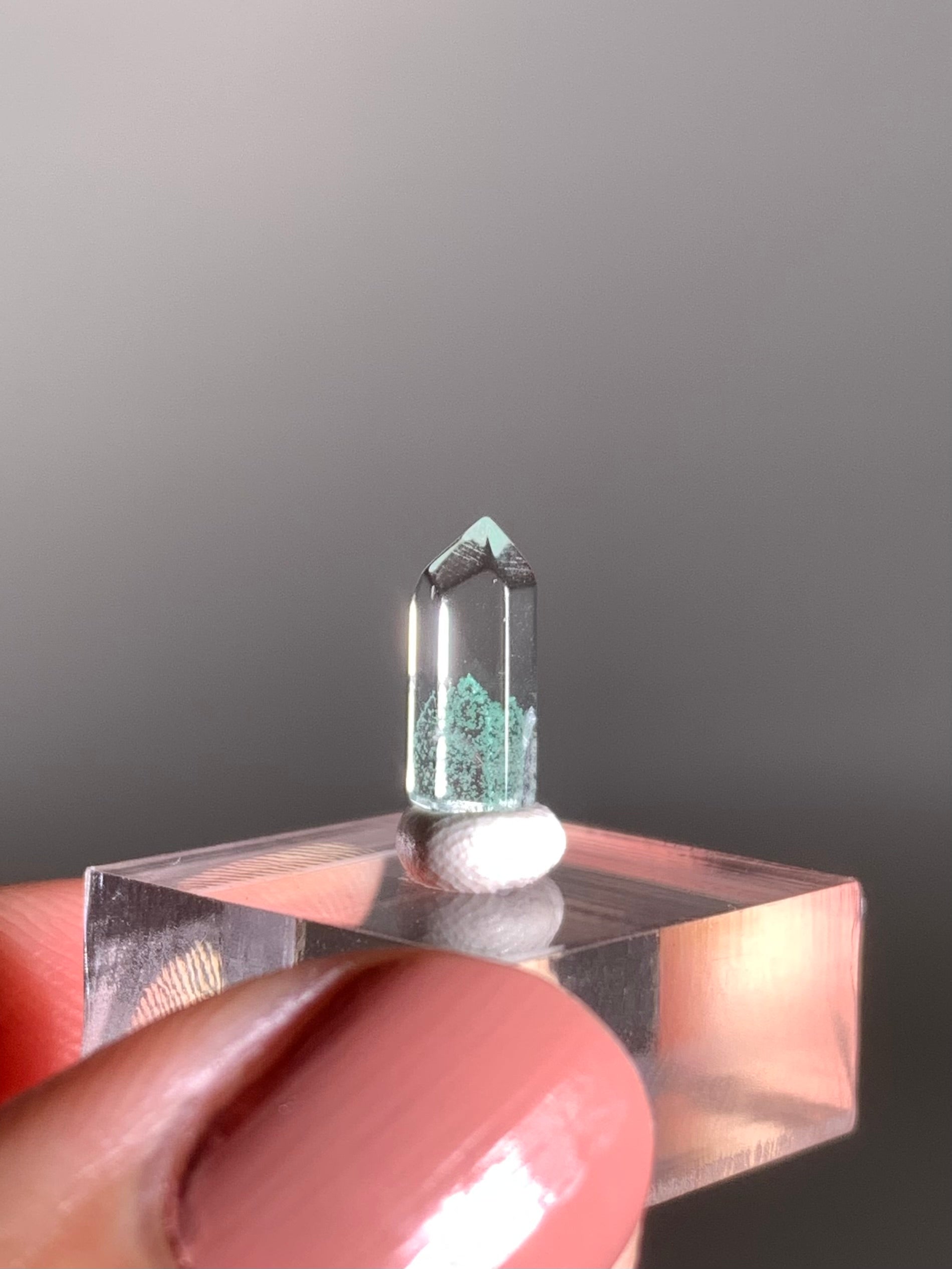 A rare and exquisite crystal, this polished phantom quartz tower from Madagascar features a unique Tiffany Blue hue—a soft, pastel aqua rarely seen in quartz. This exceptionally rare coloration is found only in select deposits from Madagascar. Natural phantom formations within the stone reveal ghost-like layers of earlier crystal growth, creating stunning visual depth. Highly sought after for both its beauty and rarity, this piece is ideal for collectors and crystal enthusiasts alike.
