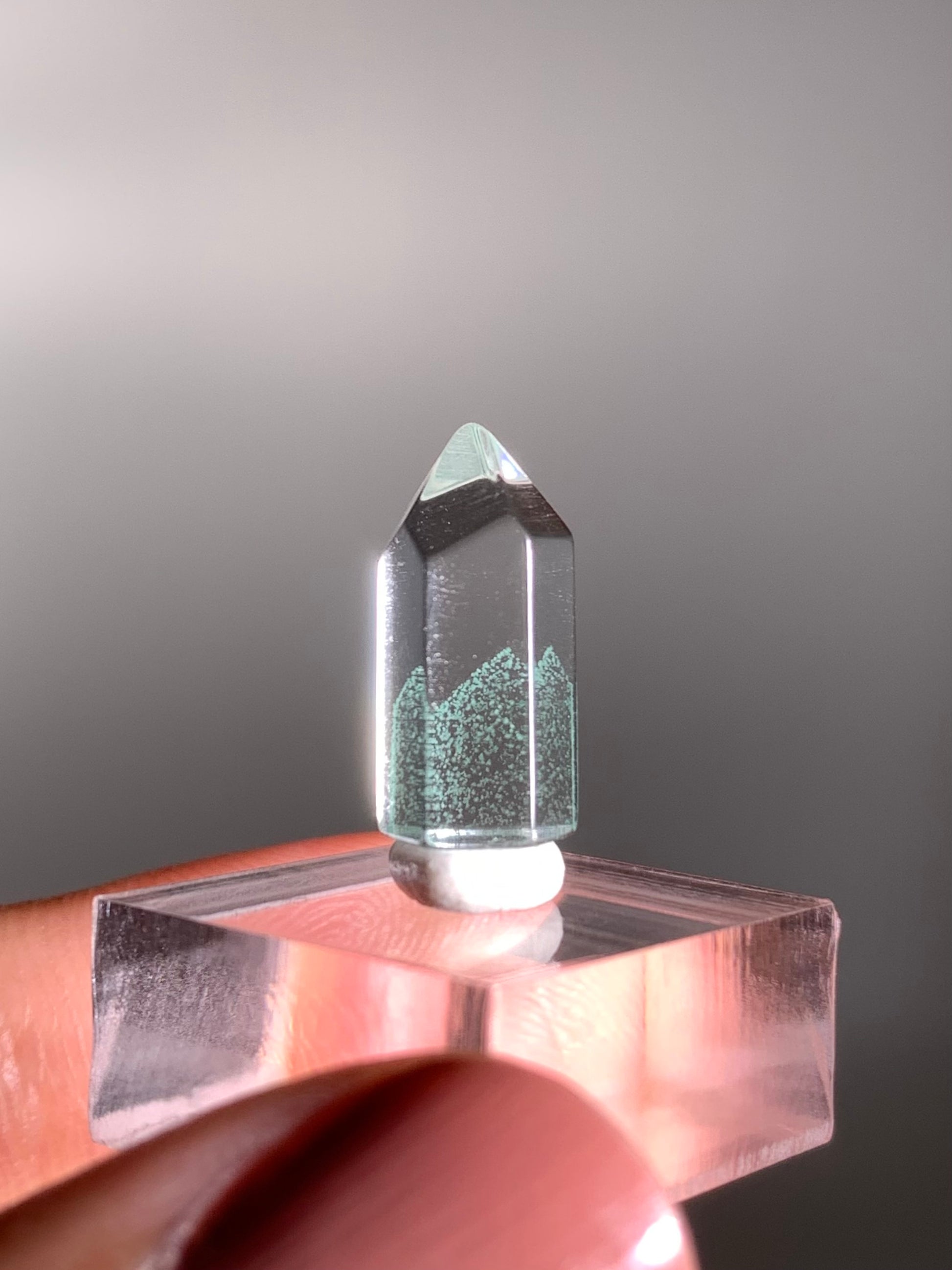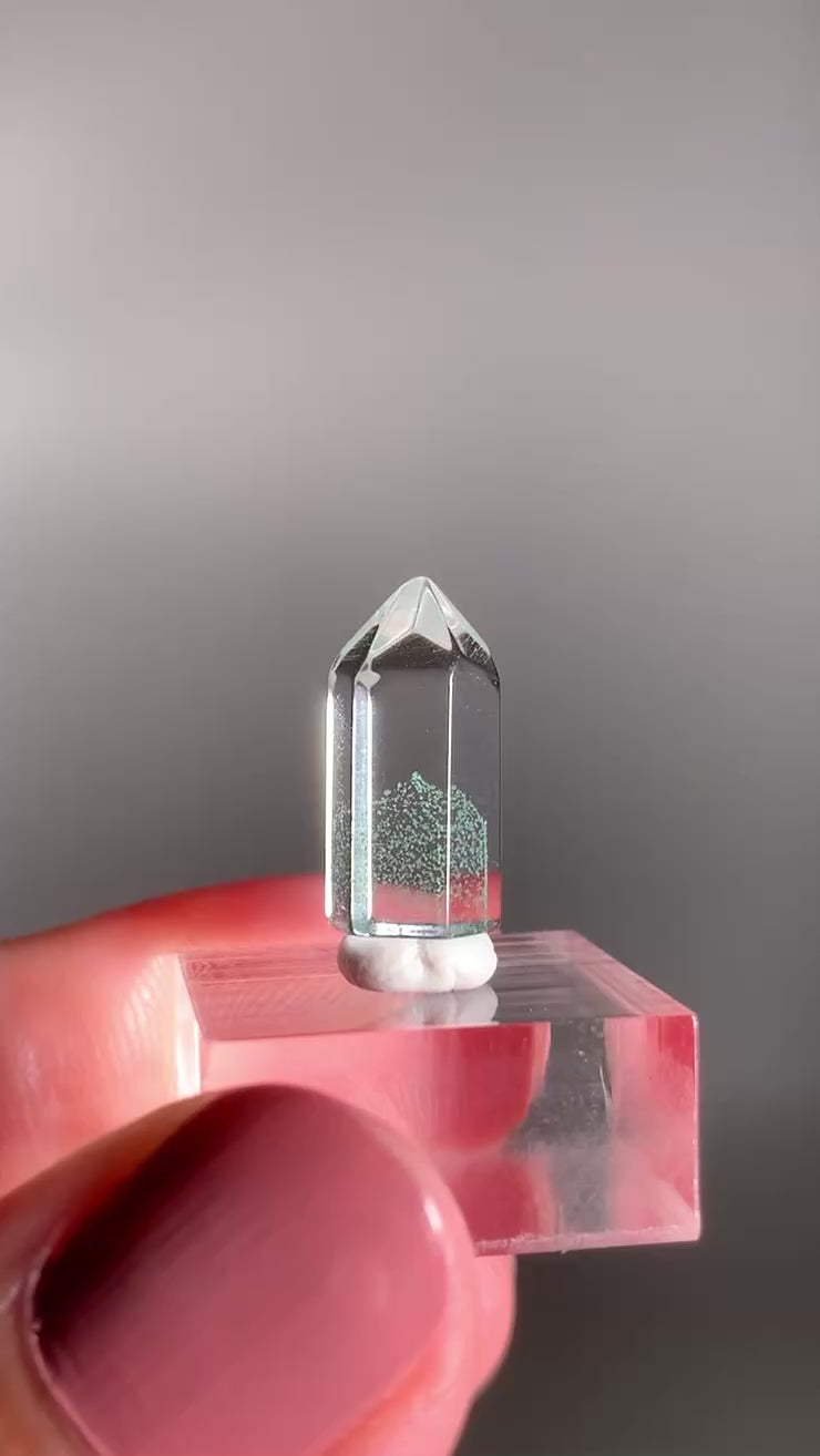 A rare and exquisite crystal, this polished phantom quartz tower from Madagascar features a unique Tiffany Blue hue—a soft, pastel aqua rarely seen in quartz. This exceptionally rare coloration is found only in select deposits from Madagascar. Natural phantom formations within the stone reveal ghost-like layers of earlier crystal growth, creating stunning visual depth. Highly sought after for both its beauty and rarity, this piece is ideal for collectors and crystal enthusiasts alike.