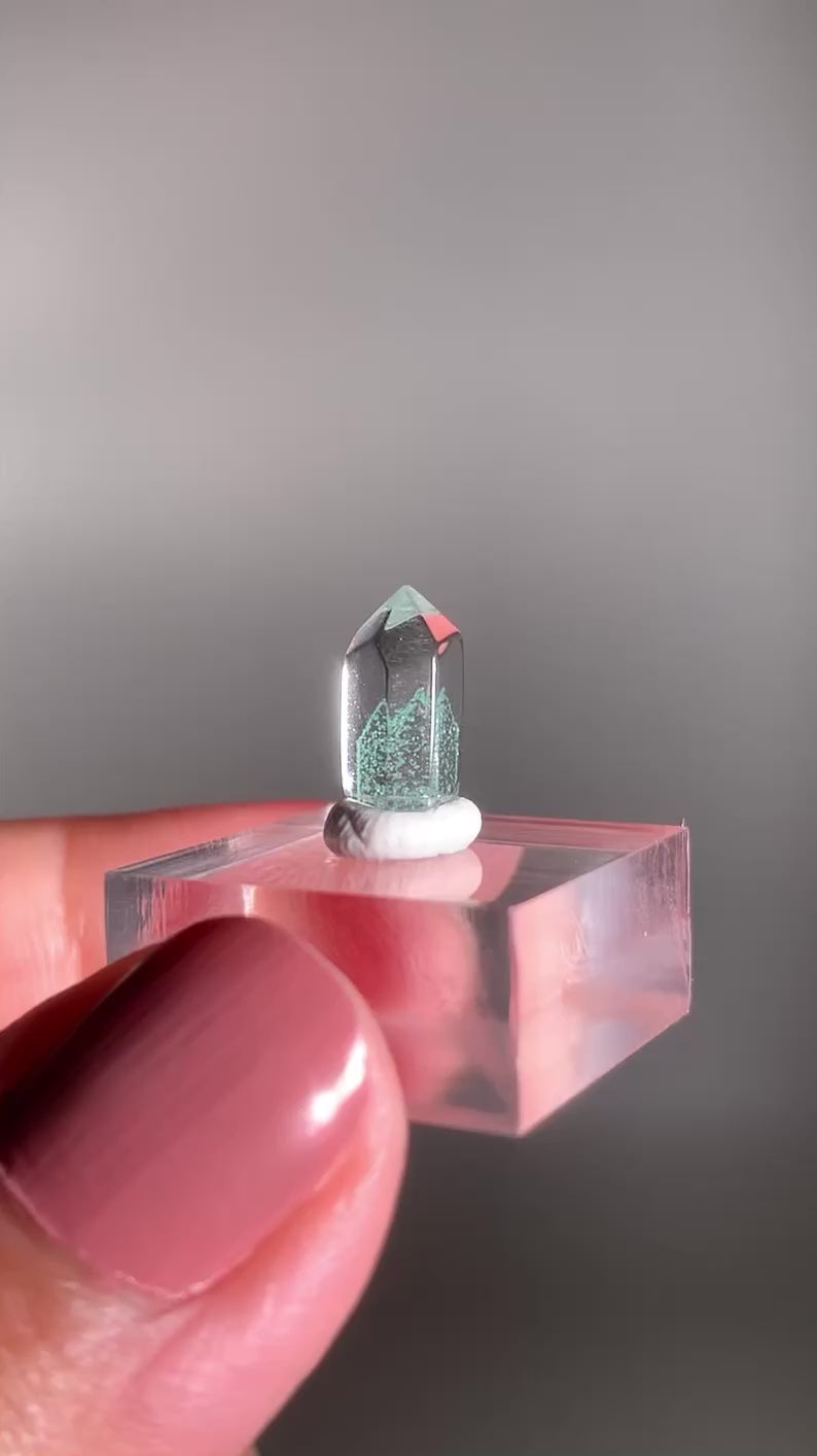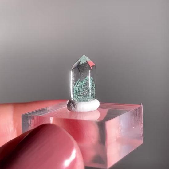 A rare and exquisite crystal, this polished phantom quartz tower from Madagascar features a unique Tiffany Blue hue—a soft, pastel aqua rarely seen in quartz. This exceptionally rare coloration is found only in select deposits from Madagascar. Natural phantom formations within the stone reveal ghost-like layers of earlier crystal growth, creating stunning visual depth. Highly sought after for both its beauty and rarity, this piece is ideal for collectors and crystal enthusiasts alike.