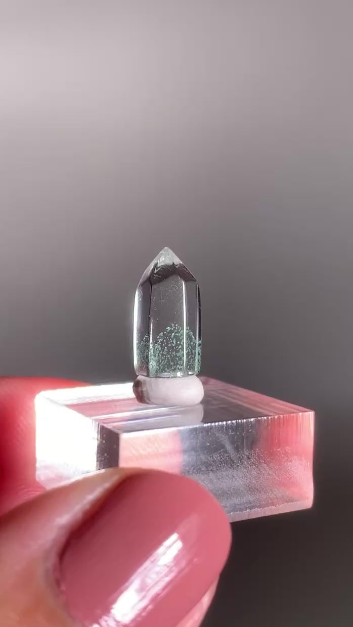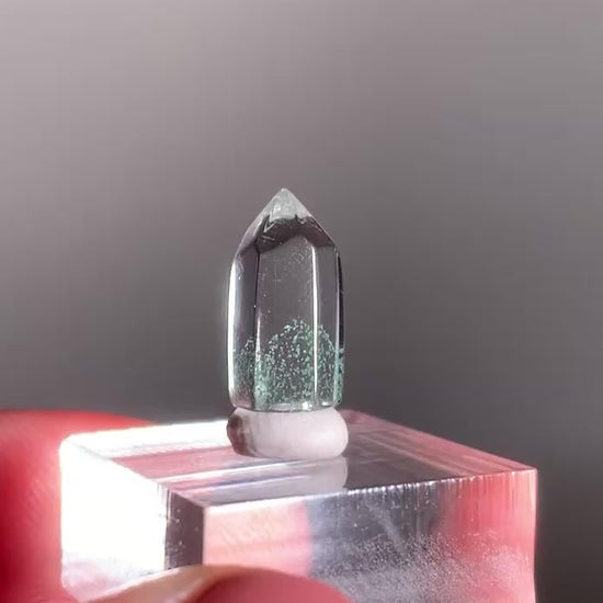 A rare and exquisite crystal, this polished phantom quartz tower from Madagascar features a unique Tiffany Blue hue—a soft, pastel aqua rarely seen in quartz. This exceptionally rare coloration is found only in select deposits from Madagascar. Natural phantom formations within the stone reveal ghost-like layers of earlier crystal growth, creating stunning visual depth. Highly sought after for both its beauty and rarity, this piece is ideal for collectors and crystal enthusiasts alike.