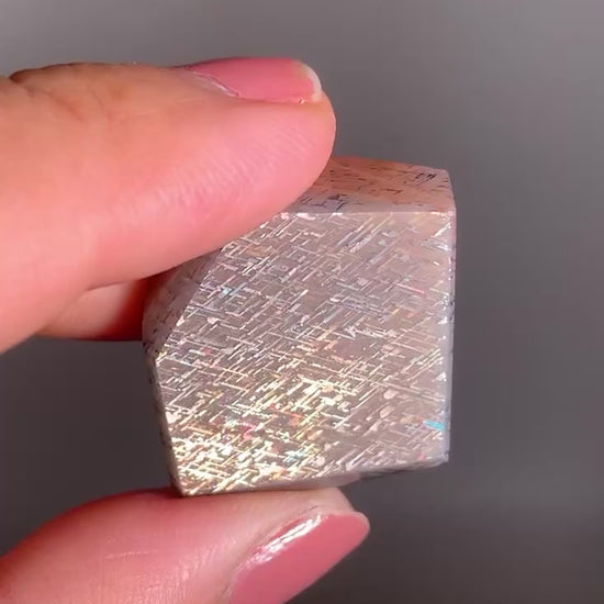 A rare and dazzling feldspar featuring shimmering lattice-like inclusions and vibrant rainbow flashes — a true collector’s gemstone with cosmic beauty.
