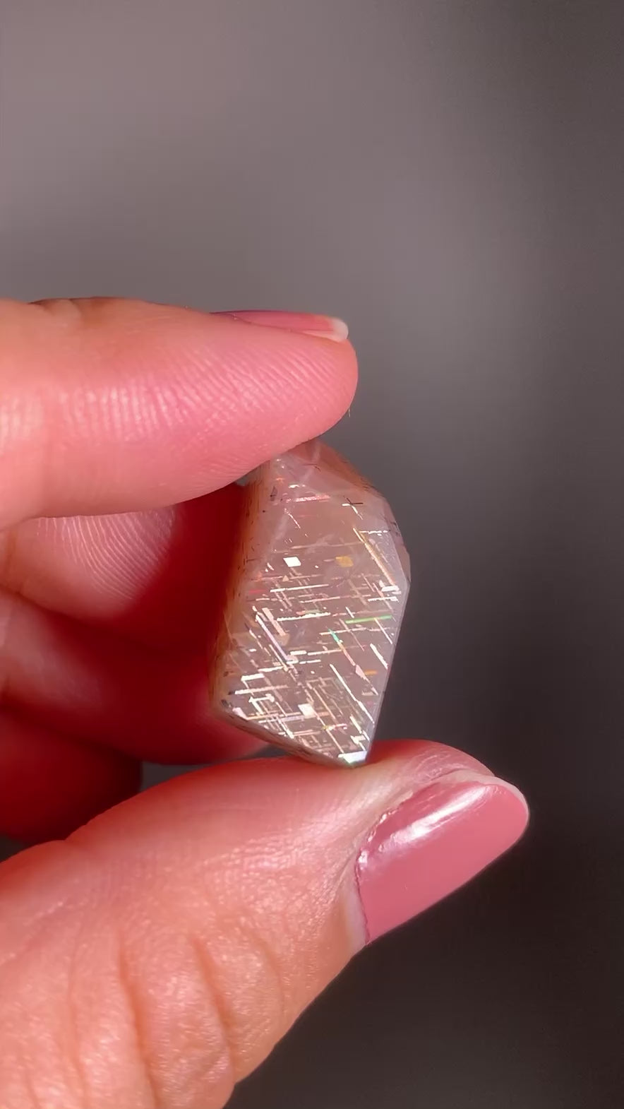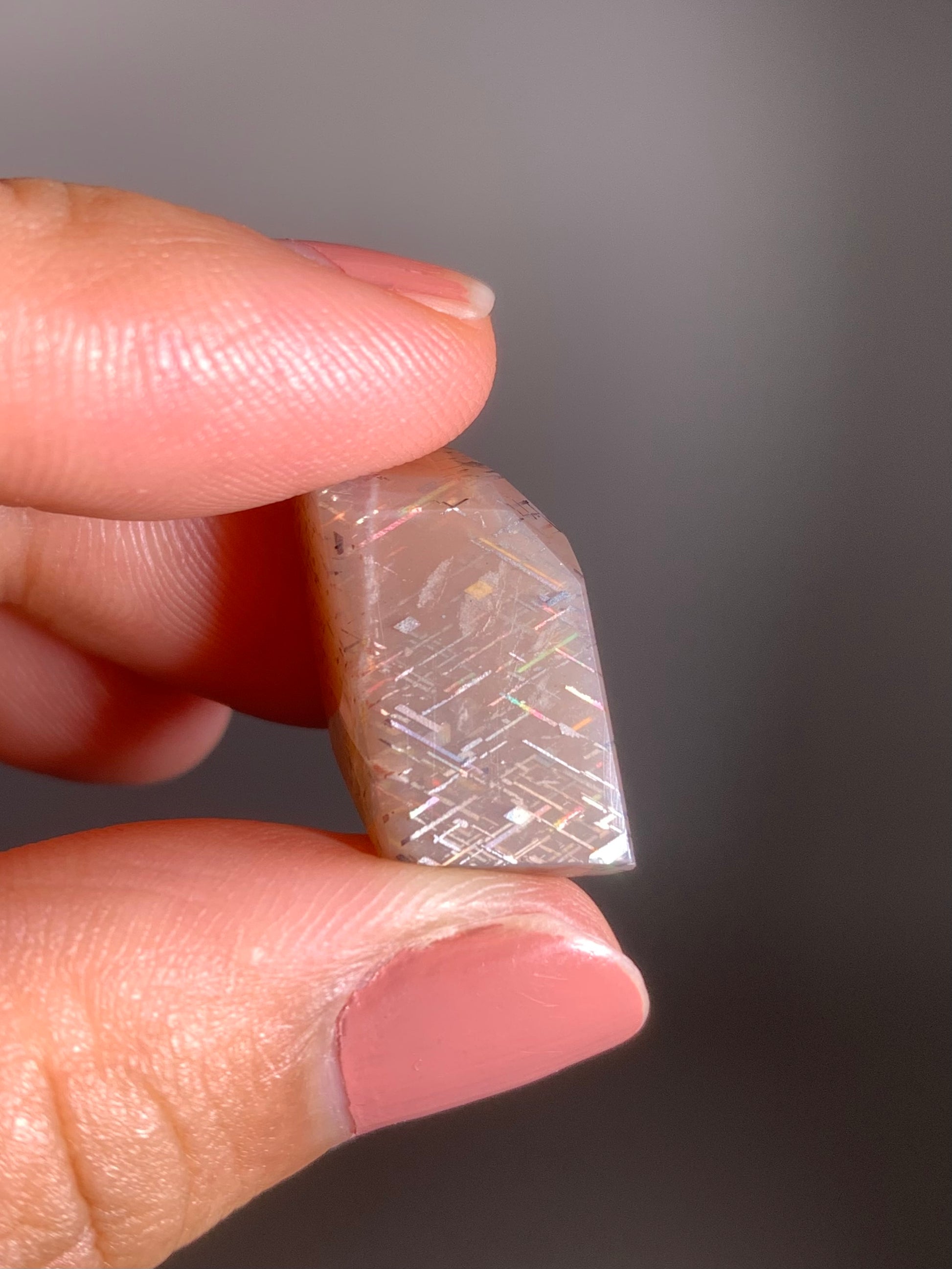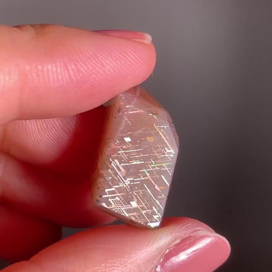 Rainbow Lattice Sunstone from Tanzania is a rare gem with sparkling lattice patterns and flashes of rainbow color — a natural stunner that’s totally unique.