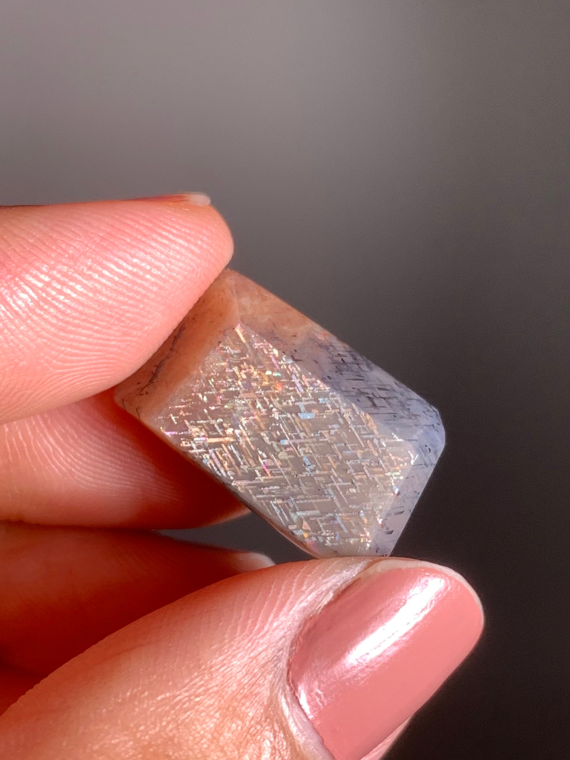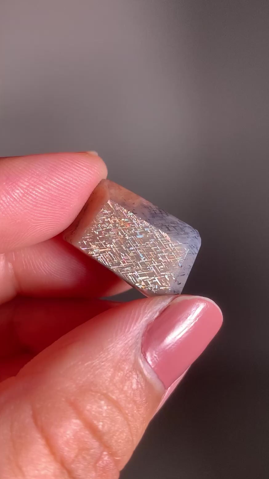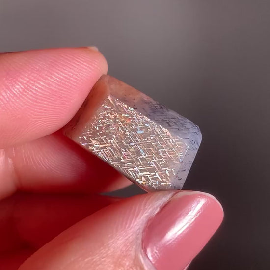 Rainbow Lattice Sunstone from Tanzania is a rare gem with sparkling lattice patterns and flashes of rainbow color — a natural stunner that’s totally unique.