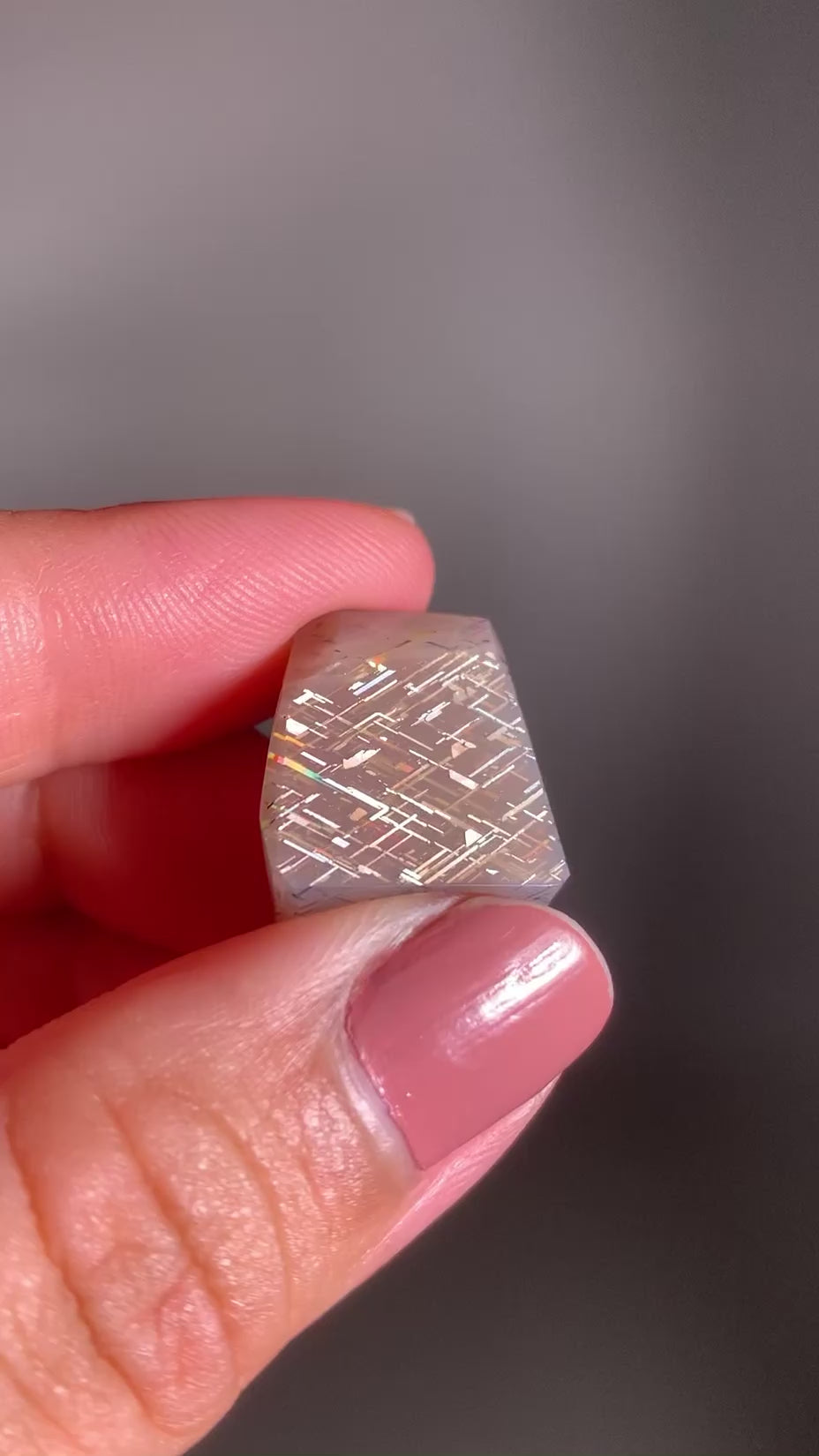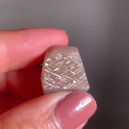 Rainbow Lattice Sunstone from Tanzania is a rare gem with sparkling lattice patterns and flashes of rainbow color — a natural stunner that’s totally unique.