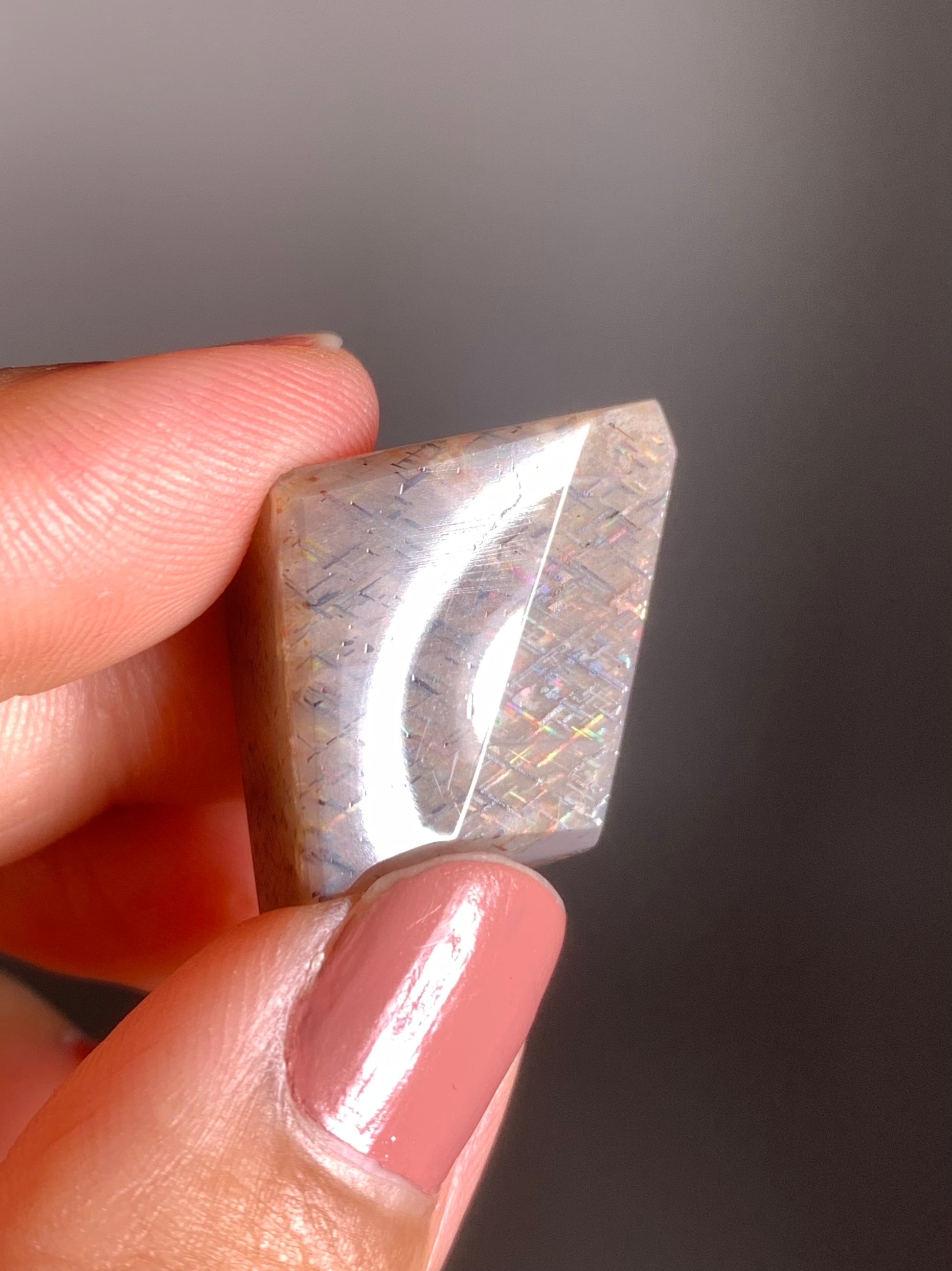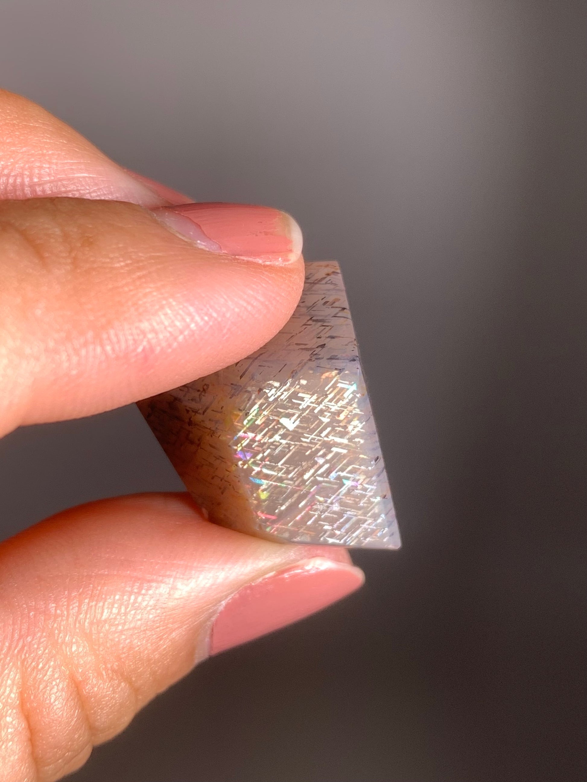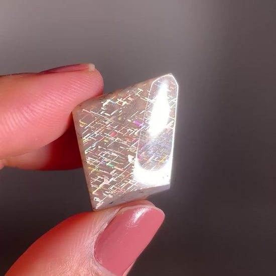 Rainbow Lattice Sunstone from Tanzania is a rare gem with sparkling lattice patterns and flashes of rainbow color — a natural stunner that’s totally unique.