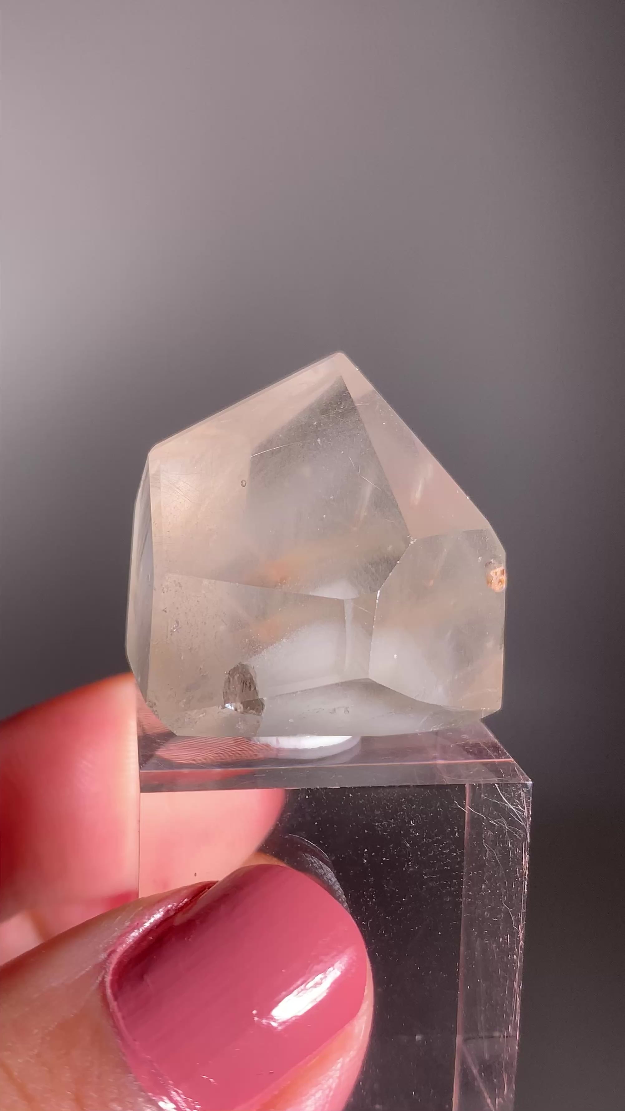 This Rare Cream Phantom Polished Tower from Brazil features elegant cream-toned phantom layers highlighted by shimmering champagne rutile and sparkling anatase inclusions. Beautifully polished to enhance its depth and luster, this exquisite collector’s crystal radiates sophistication and serene energy.