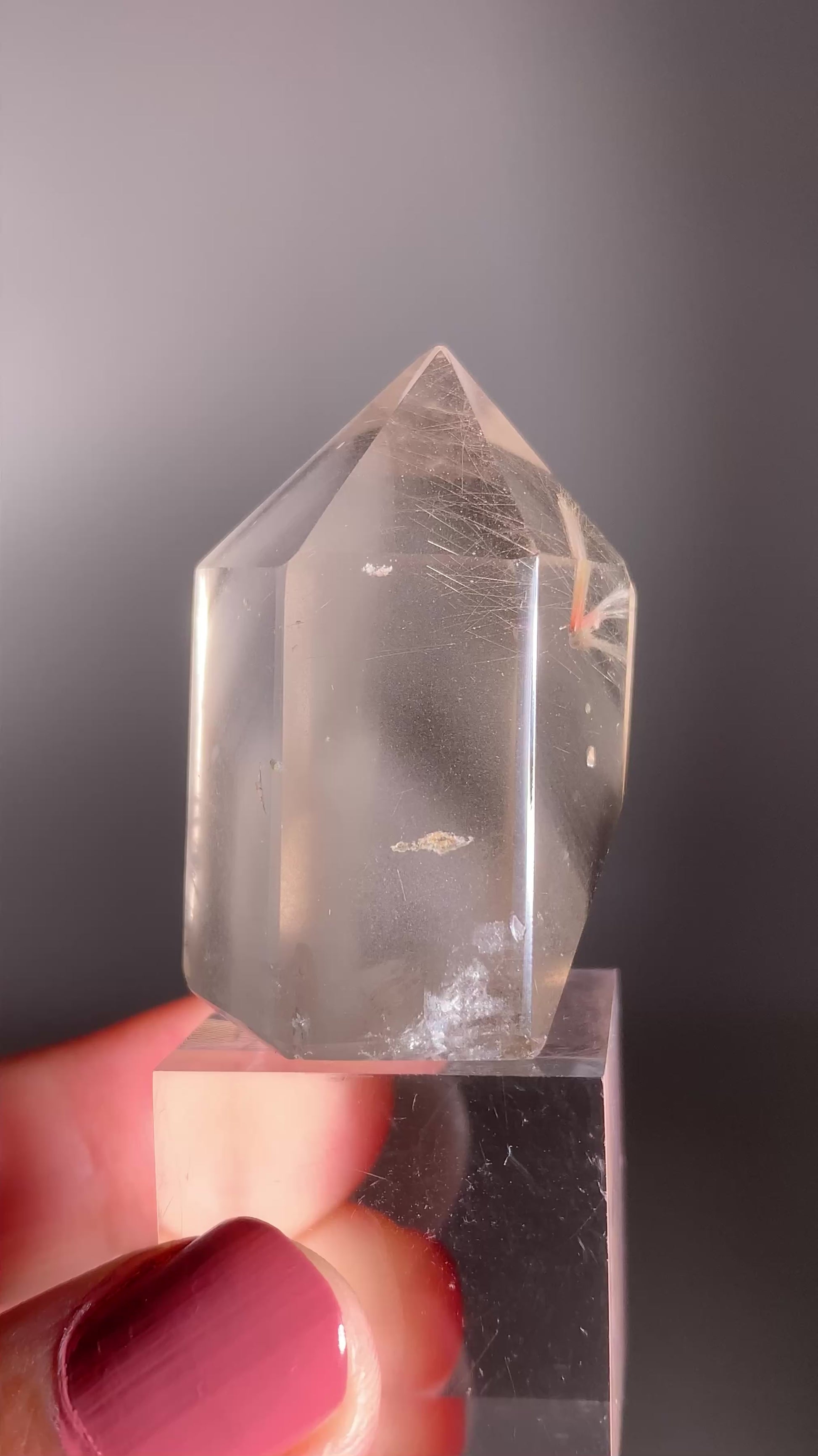 This Rare Cream Phantom with Champagne Rutile Polished Tower from Brazil showcases soft cream phantom layers paired with shimmering champagne-gold rutile threads and a few Anatase inclusion. Expertly polished to highlight its inner glow and natural beauty, this elegant collector’s crystal radiates calm, clarity, and refined energy—an exquisite piece for any crystal lover or display.