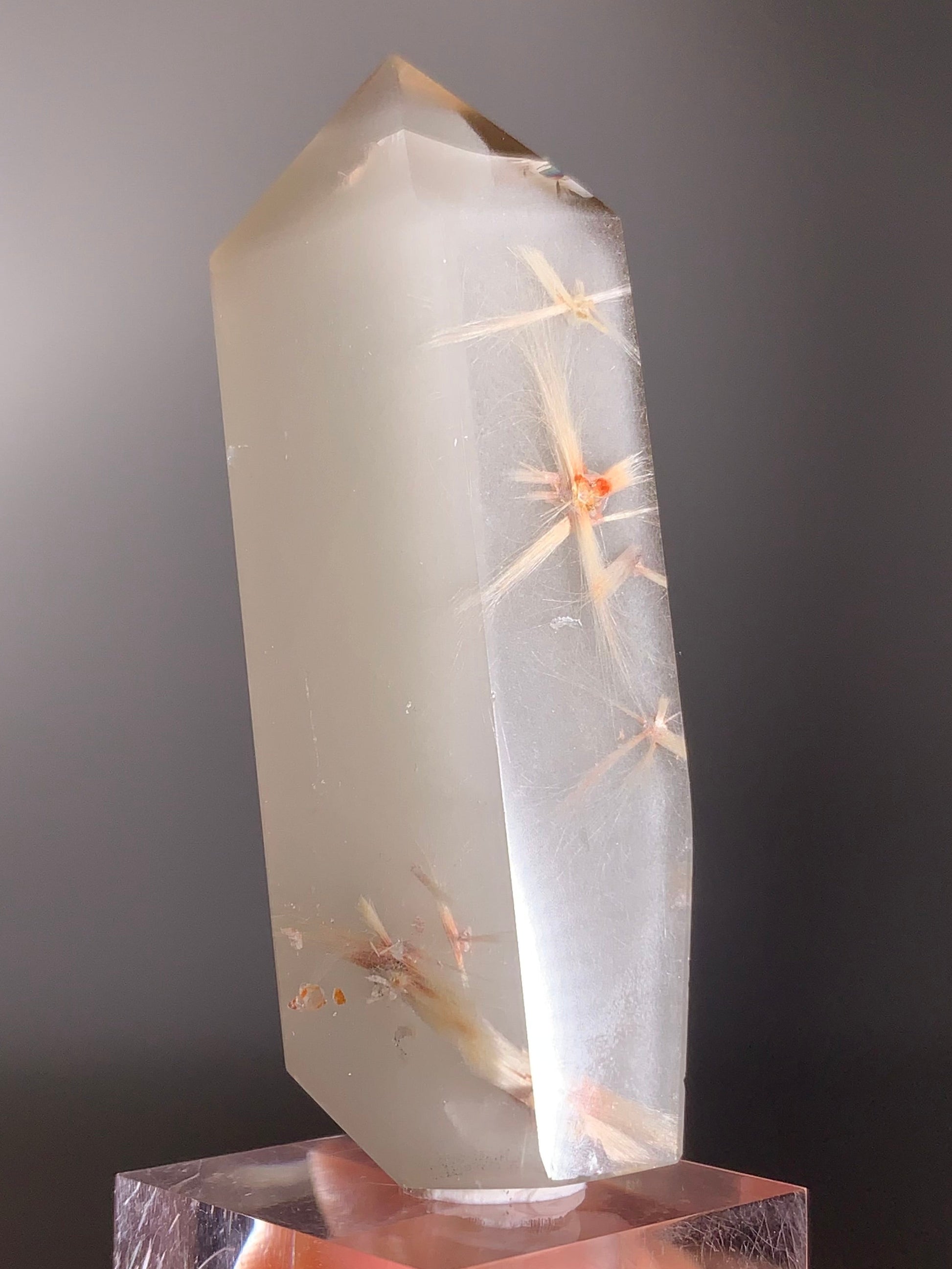 Rare Cream Phantom with Champagne Rutile Polished Tower from Brazil – Collector’s Crystal
