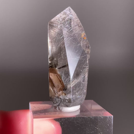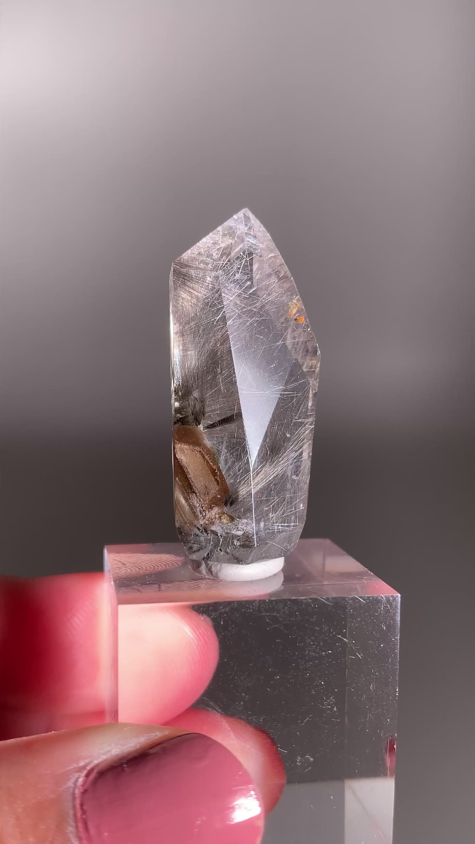 Rare Dark Silver Brookite Rutile in Brown Garden Quartz Crystal from Brazil