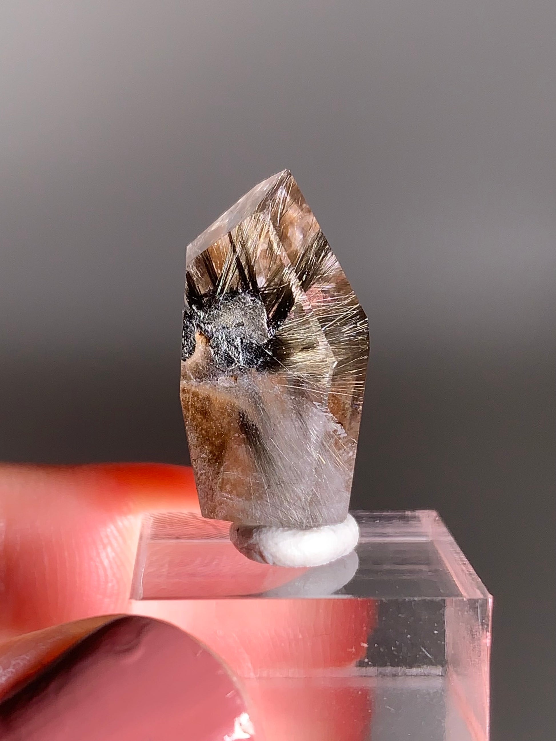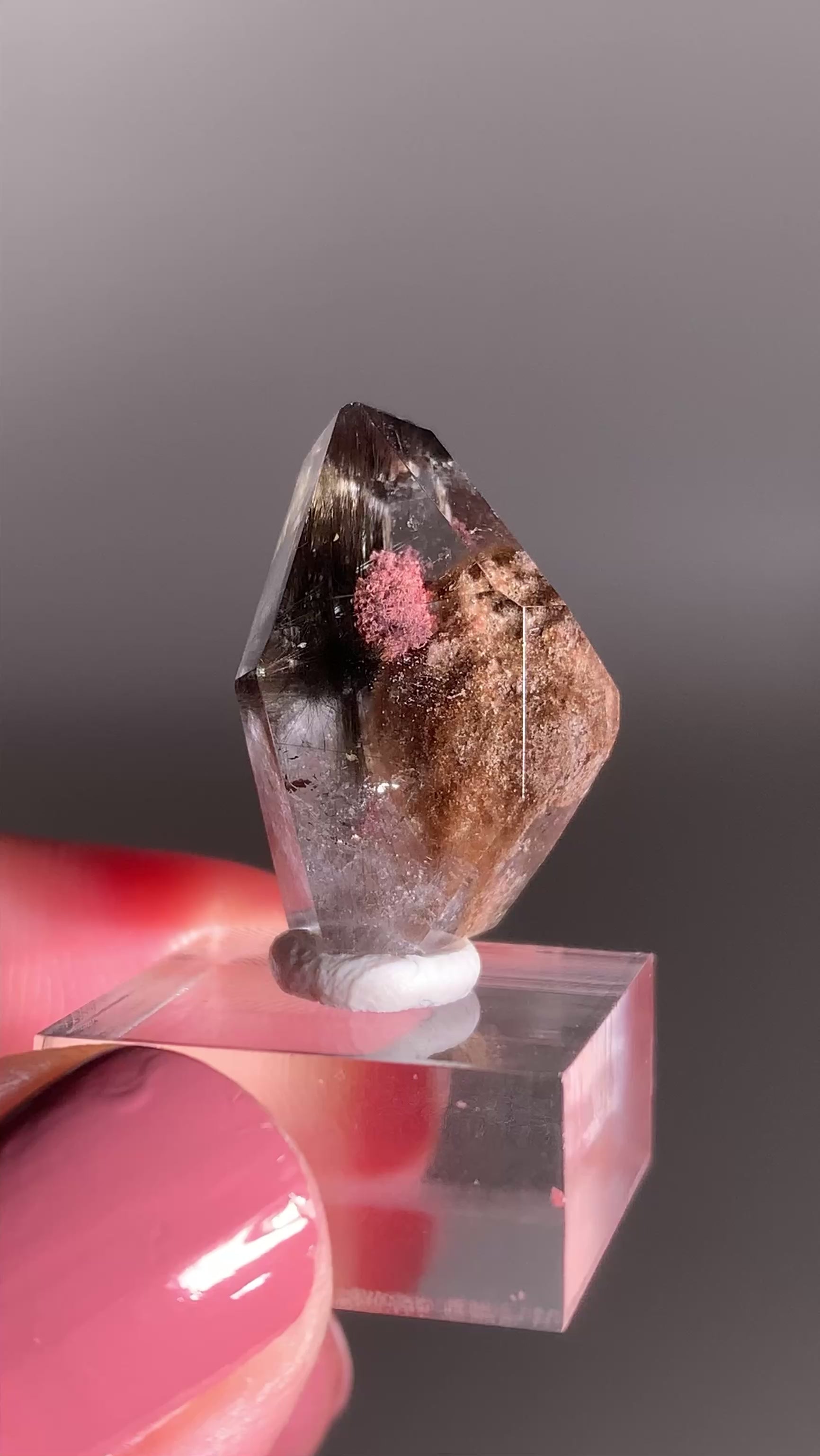 Rare Dark Silver Brookite Rutile in Brown Garden Quartz Crystal from Brazil