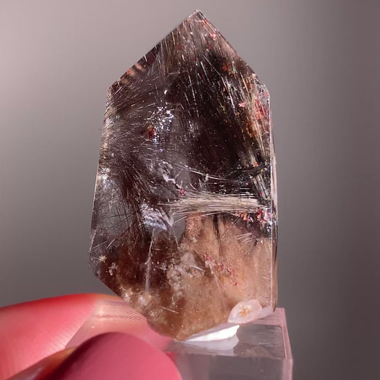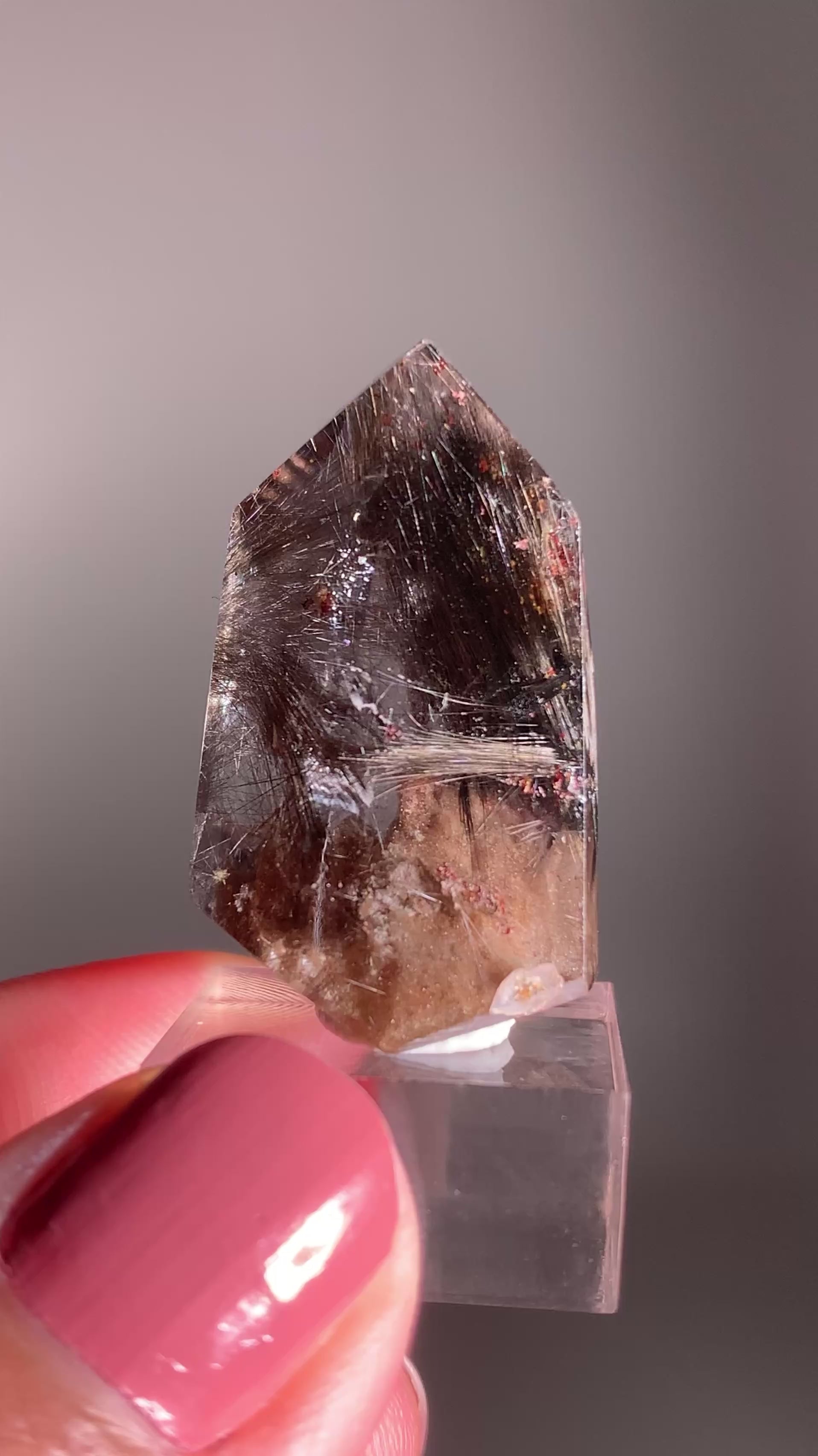 Rare Dark Silver Brookite Rutile in Brown Garden Quartz Crystal from Brazil