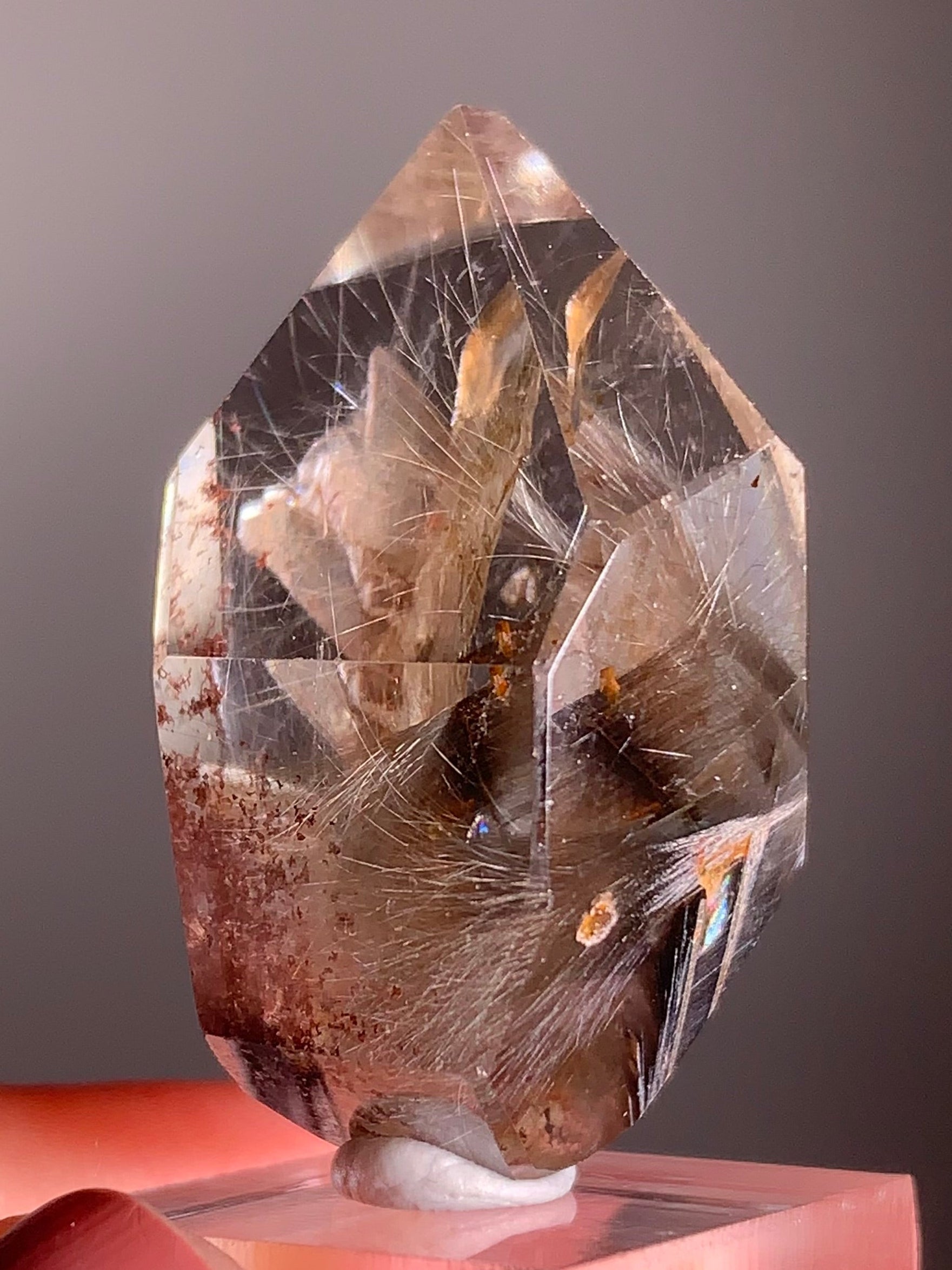 Rare Dark Silver Brookite Rutile in Brown Garden Quartz Crystal from Brazil