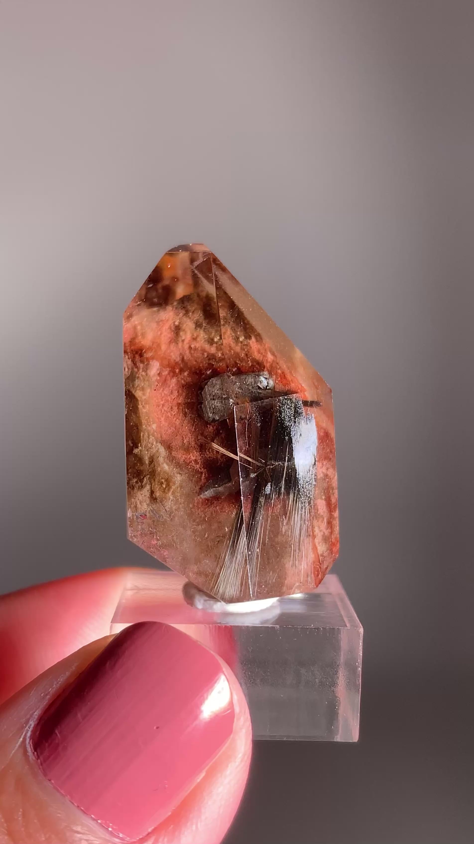 Rare Dark Silver Brookite Rutile in Brown Garden Quartz Crystal from Brazil