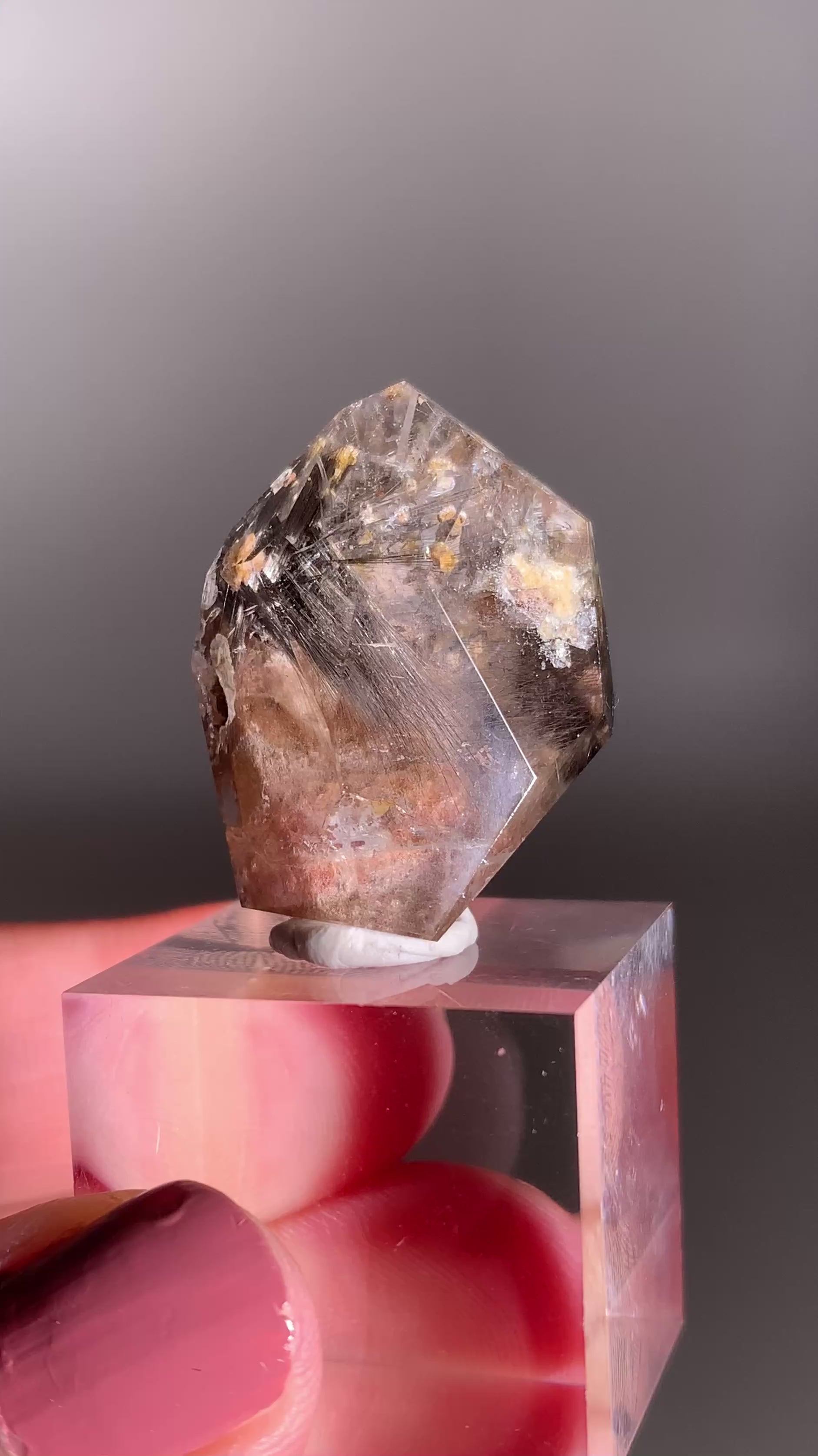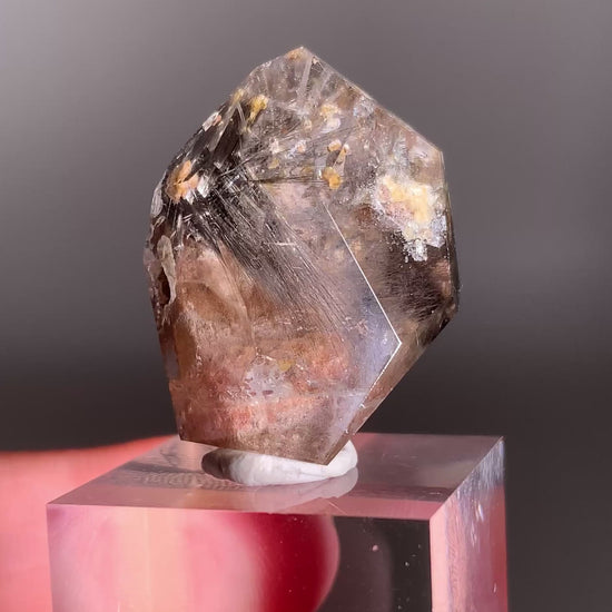 Rare Dark Silver Brookite Rutile in Brown Garden Quartz Crystal from Brazil
