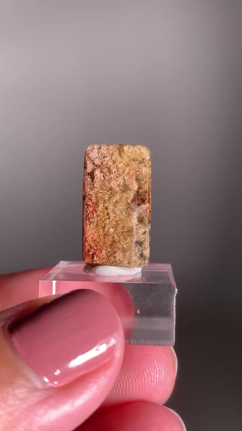 This rare polished freeform features densely packed gold flower rutile, all captured within clear quartz. A beautiful and unique piece full of natural beauty and detail.