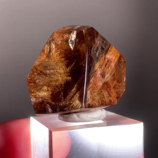 This rare variety of rutilated quartz displays delicate, flower-like rutile and lattice formations suspended within clear quartz. Polished into a sleek freeform shape, each piece beautifully highlights nature’s intricate artistry.