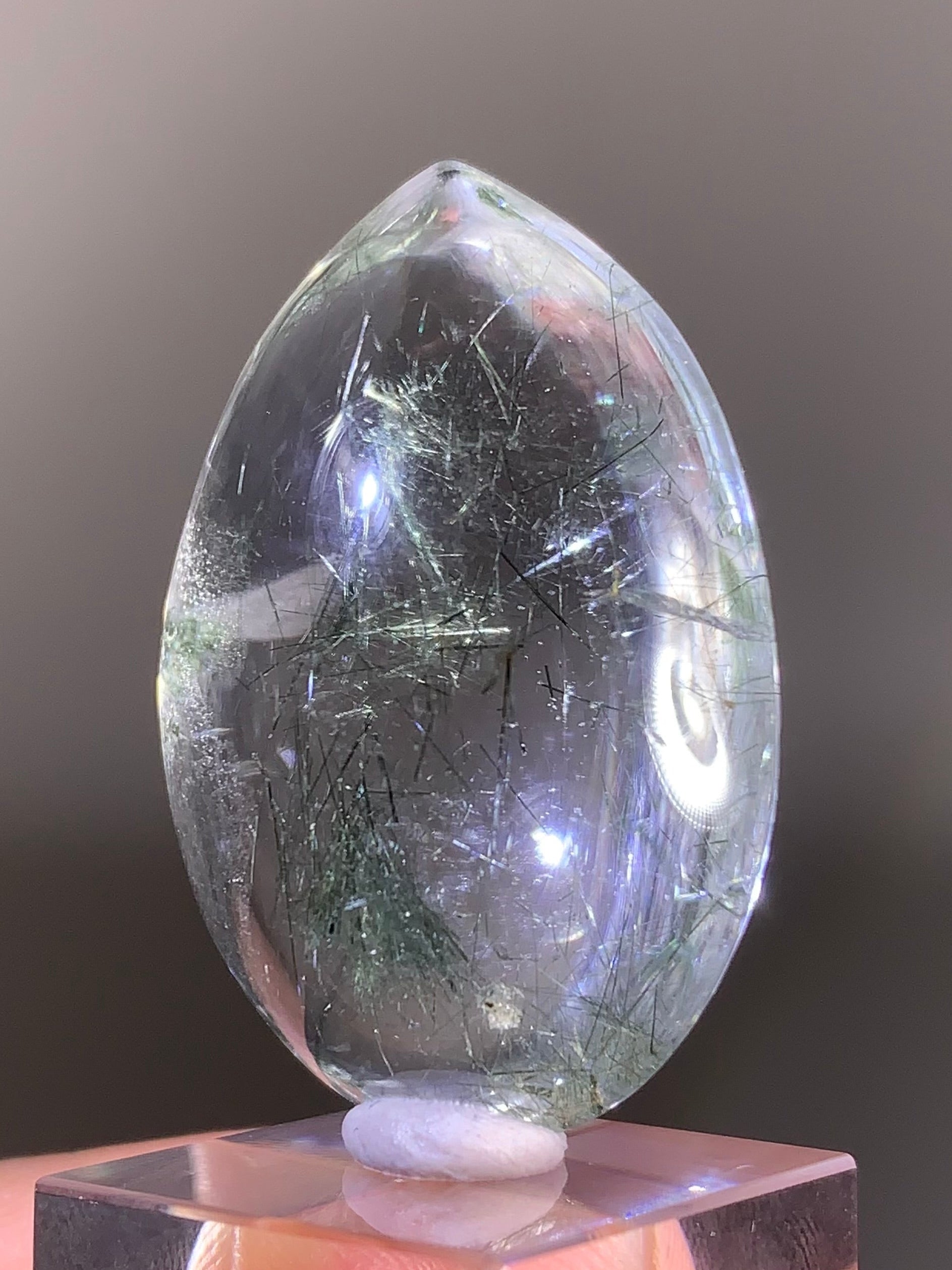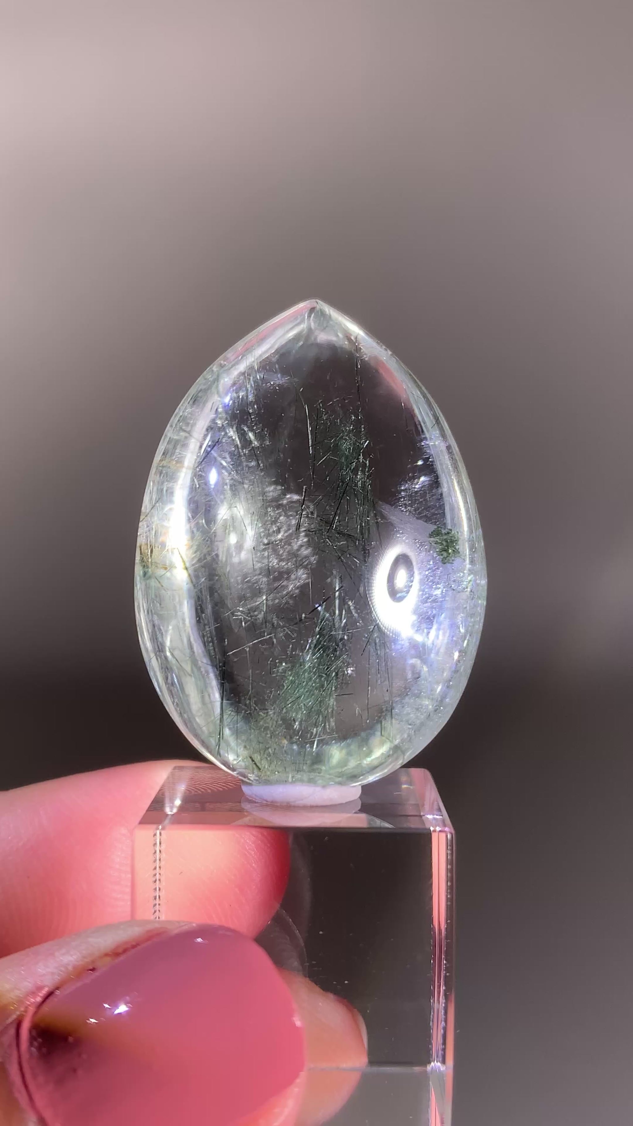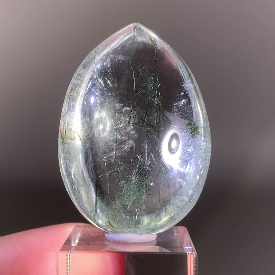 Rare Green Rutile in Clear Quartz Polished Teardrop from Brazil