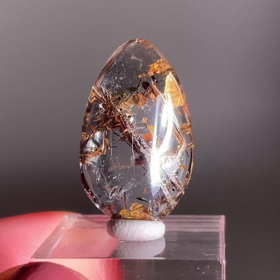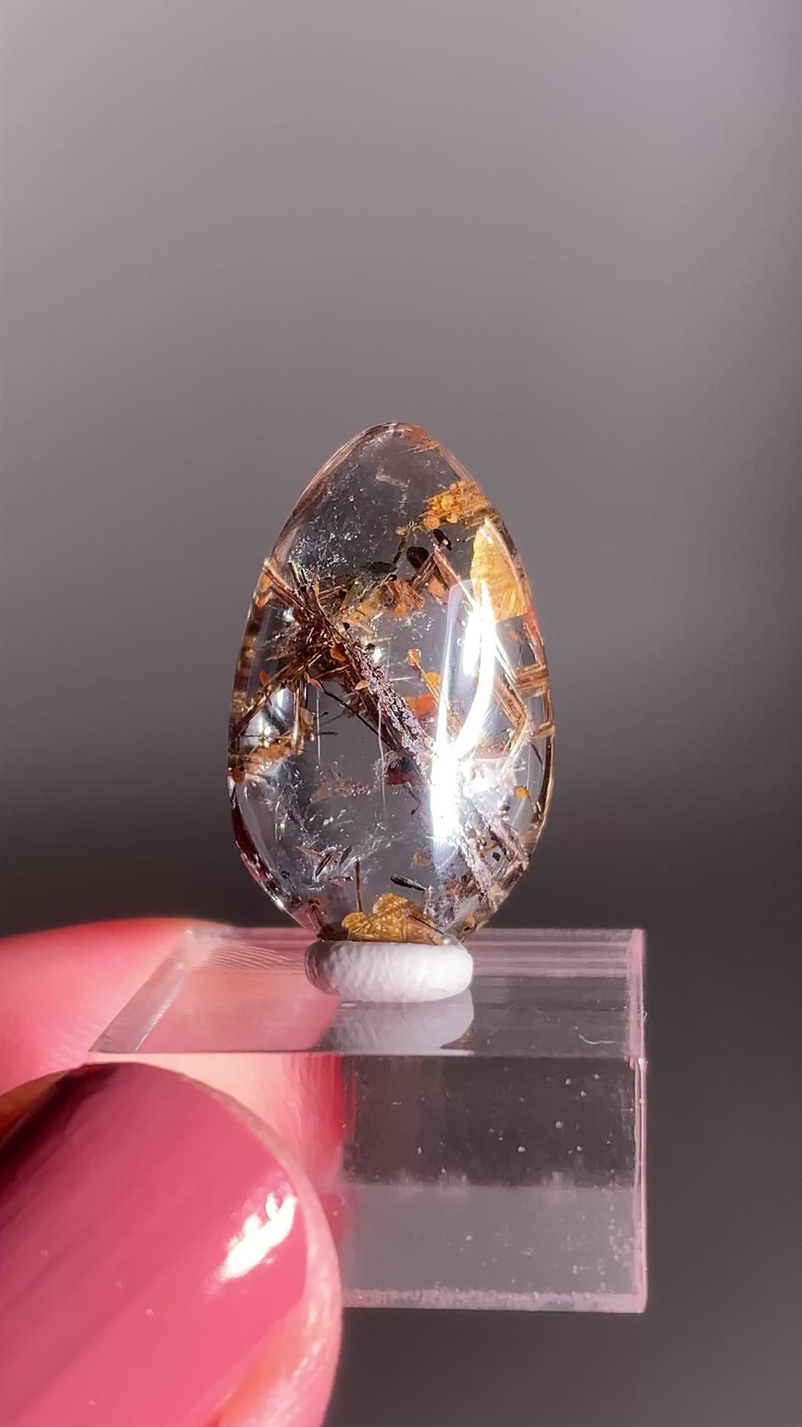 This crystal reminds me so much of the holiday season — the golden lattice rutile sparkles like festive tinsel, the garden inclusions look like fluffy snow, and the shimmering hematite and mica resemble holiday confetti. It feels like nature’s own way of celebrating the season!