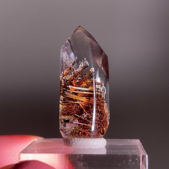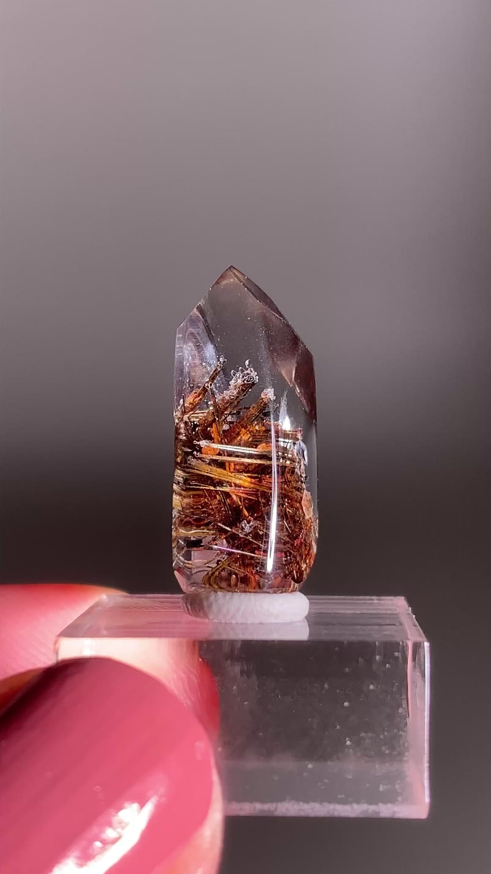 This crystal reminds me so much of the holiday season — the golden lattice rutile sparkles like festive tinsel, the garden inclusions look like fluffy snow, and the shimmering hematite and mica resemble holiday confetti. It feels like nature’s own way of celebrating the season!