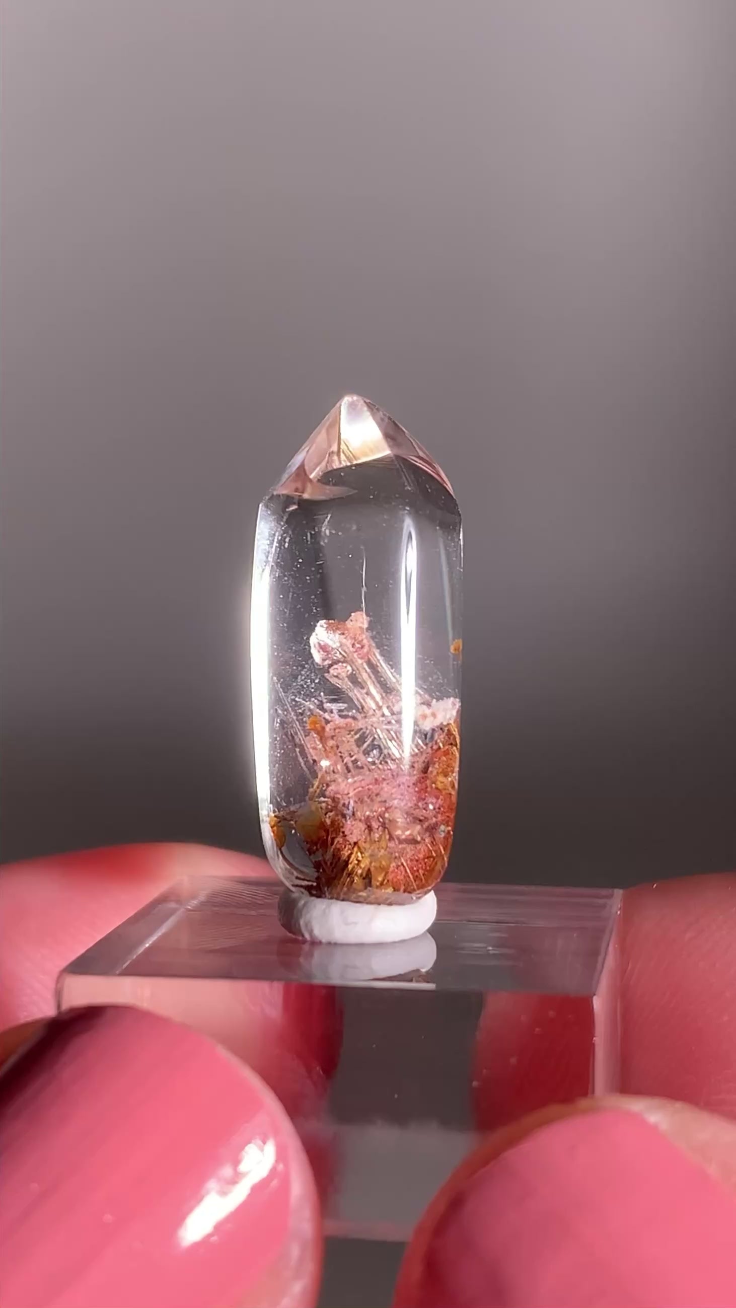 This crystal reminds me so much of the holiday season — the golden lattice rutile sparkles like festive tinsel, the garden inclusions look like fluffy snow, and the shimmering hematite and mica resemble holiday confetti. It feels like nature’s own way of celebrating the season!