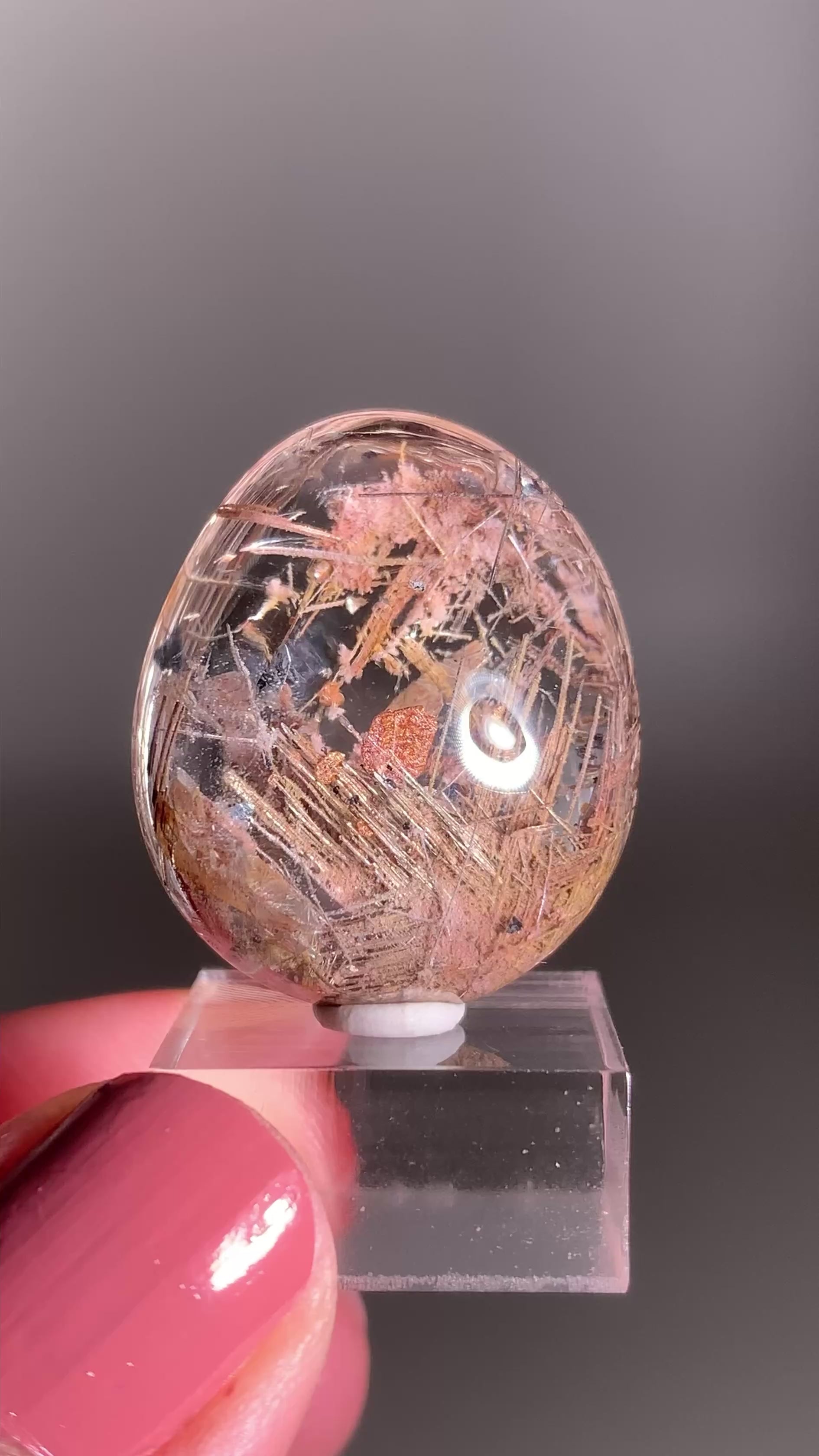 This crystal reminds me so much of the holiday season — the silver lattice rutile sparkles like festive tinsel, the garden inclusions look like fluffy snow, and the shimmering hematite and mica resemble holiday confetti. It feels like nature’s own way of celebrating the season!