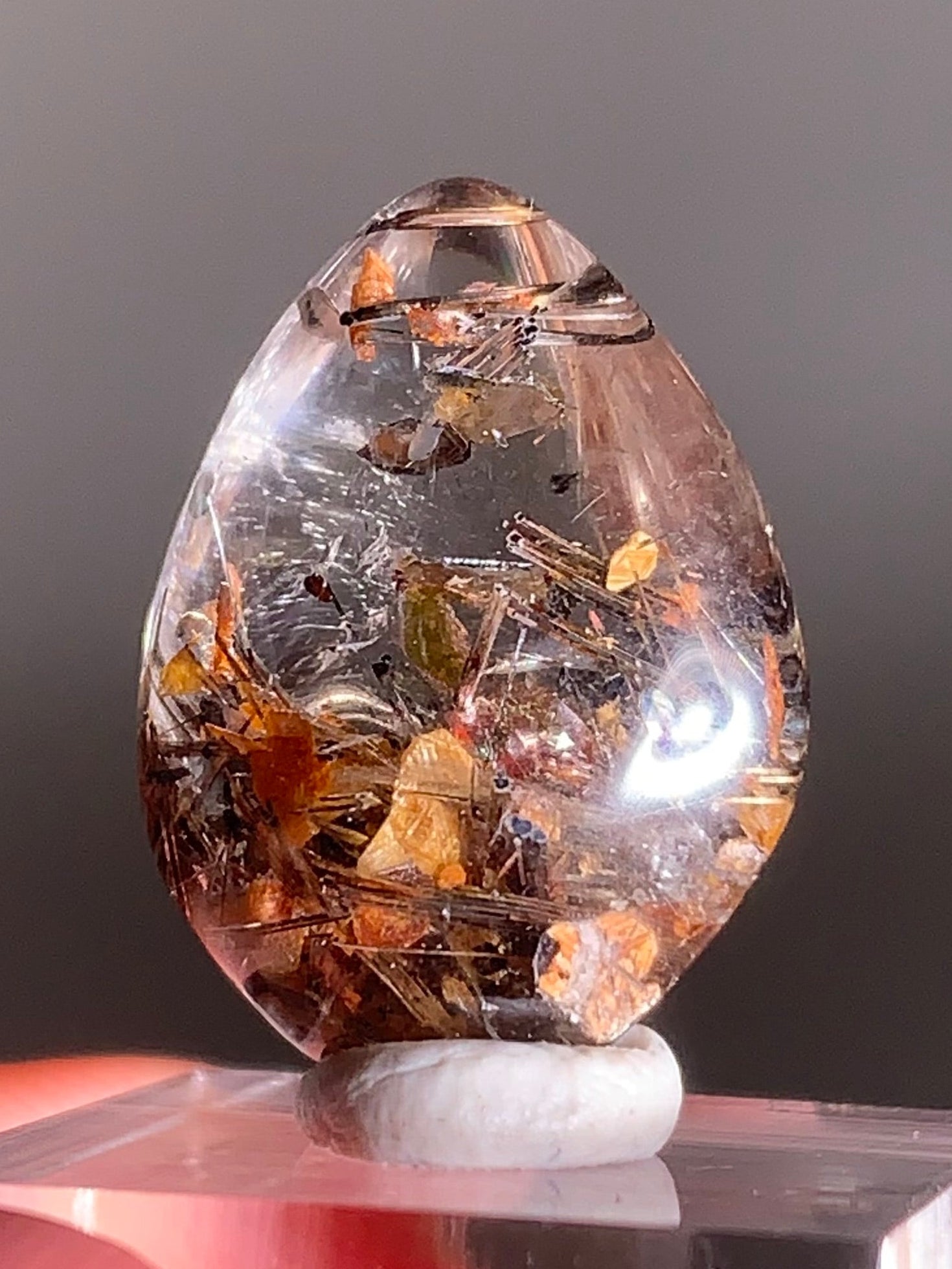 This crystal reminds me so much of the holiday season — the golden lattice rutile looks like shimmering tinsel, and the sparkling hematite and mica resembles festive confetti. It’s nature’s own way of celebrating the season!