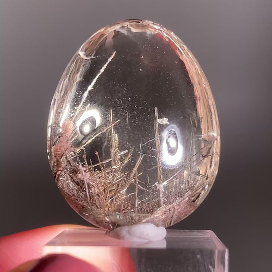 This stunning polished piece features intricate lattice silver rutile needles intertwined with sparkling hematite, mica and garden quartz inclusions. Hand-polished to showcase its natural patterns and depth, this ethically sourced piece from Brazil is truly one-of-a-kind.