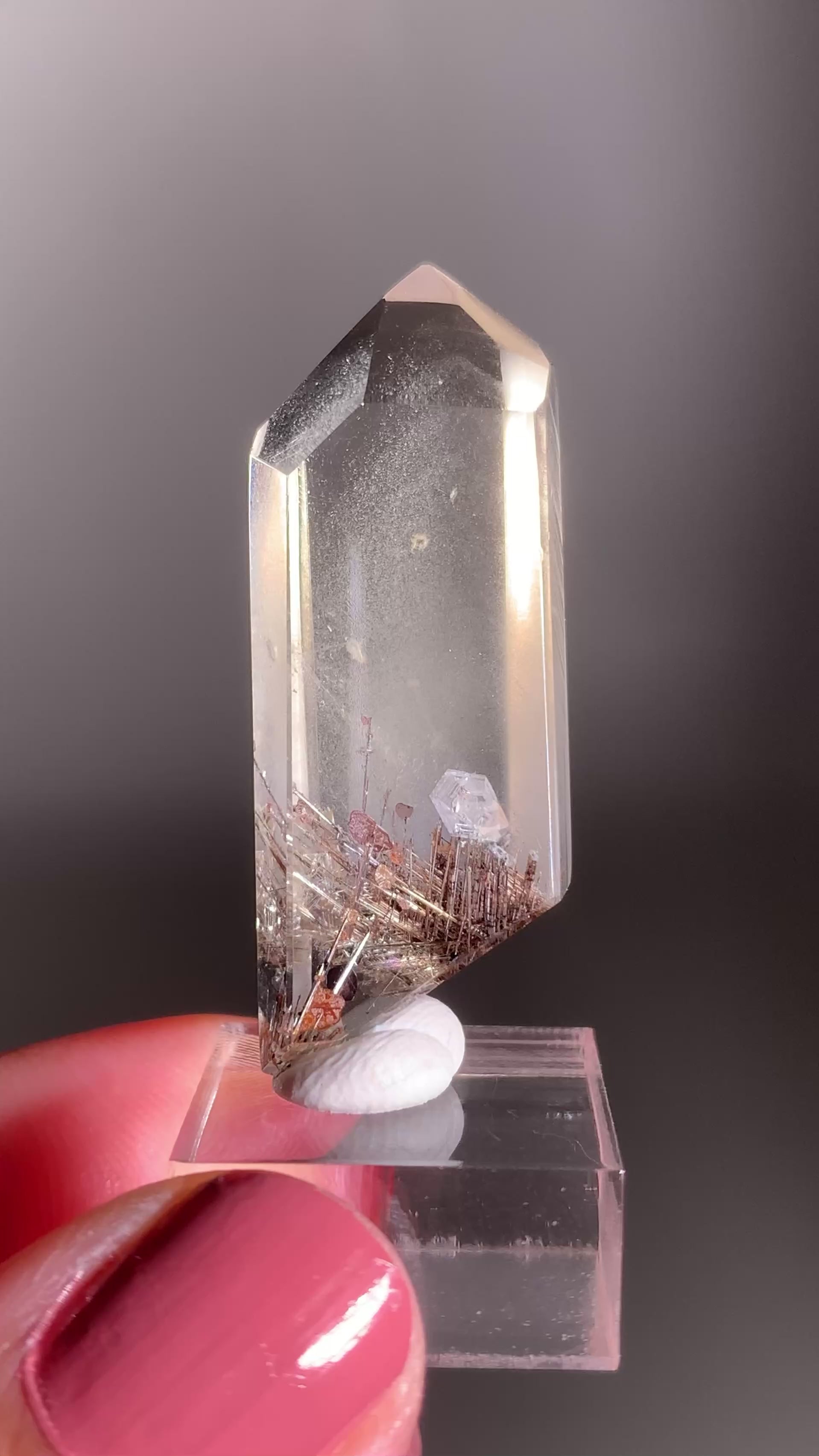 This crystal reminds me so much of the holiday season — the silver lattice rutile sparkles like festive tinsel, the garden inclusions look like fluffy snow, and the shimmering hematite and mica resemble holiday confetti. It feels like nature’s own way of celebrating the season!