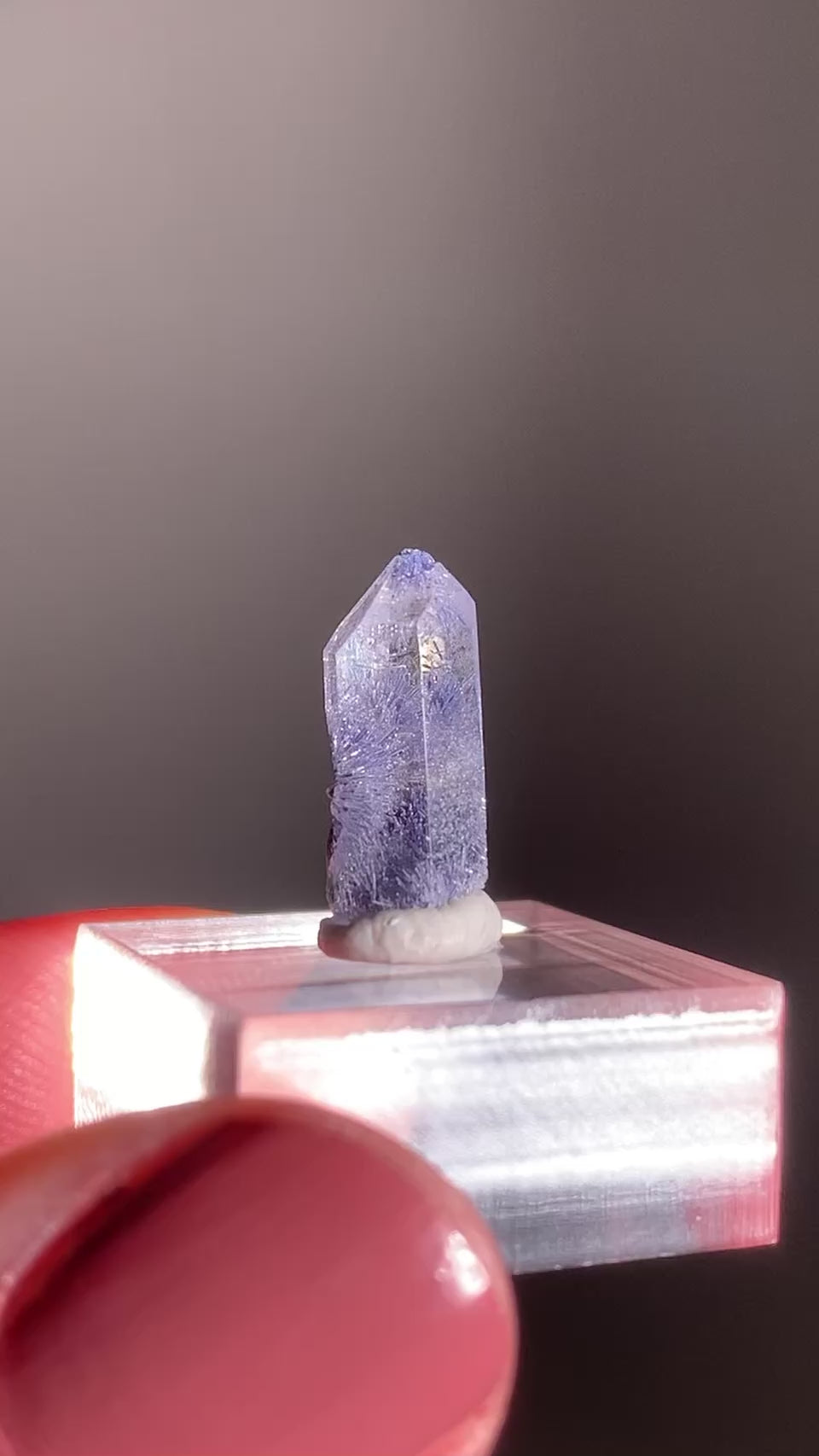 A rare mini raw Dumortierite point with rich blue hues and natural form. Highly valued for its scarcity and connection to clarity and inner strength.