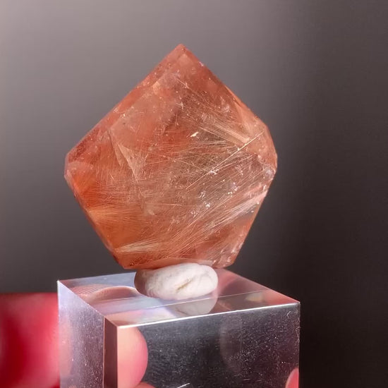 This rare polished freeform quartz features a soft and elegant blend of pink, peach, and gold rutile inclusions. The delicate, thread-like formations shimmer within the crystal, creating a warm, radiant glow. Each piece offers a unique, soothing beauty—perfect for display, energy work, or simply adding a gentle touch of color to your collection.