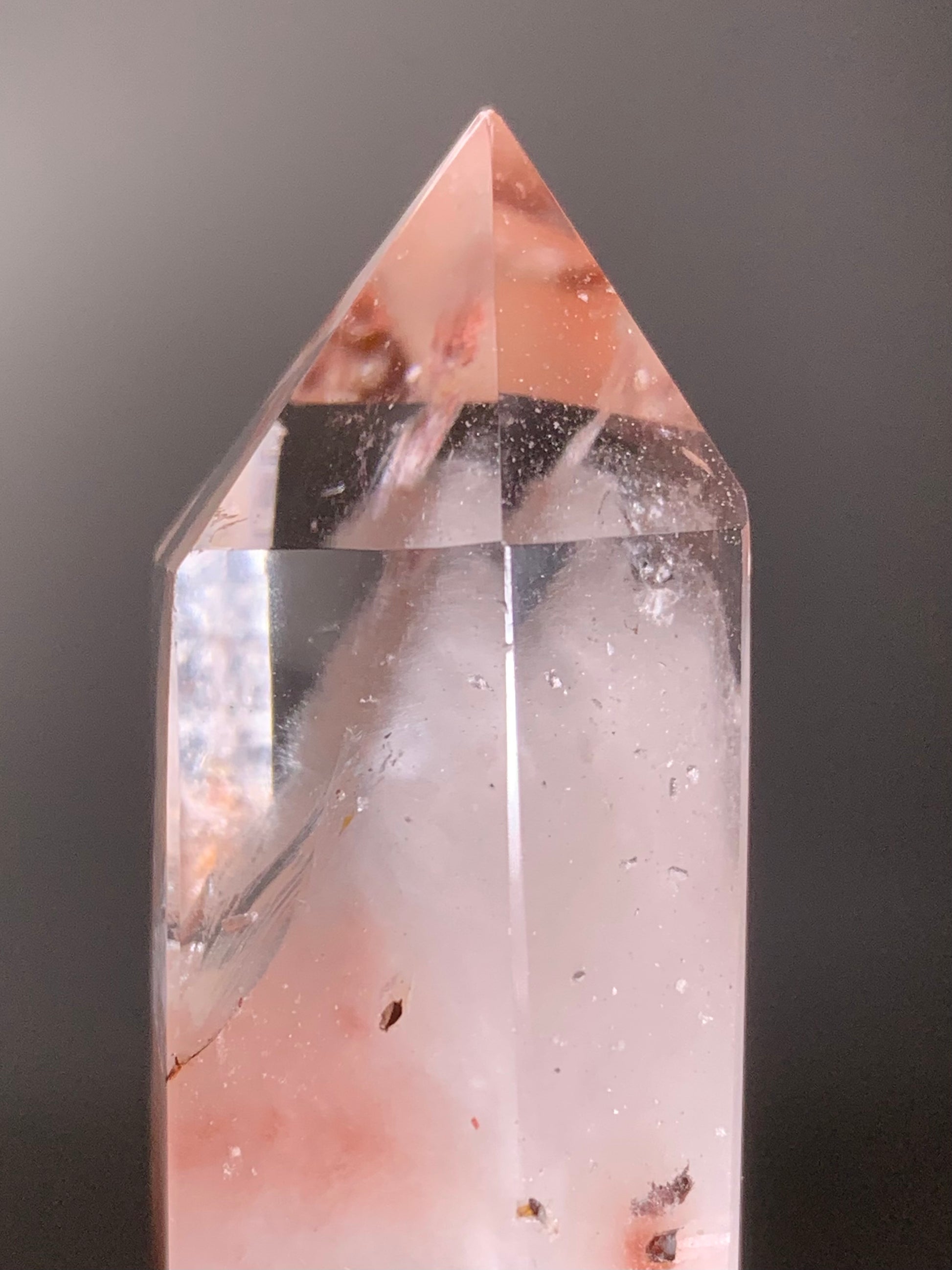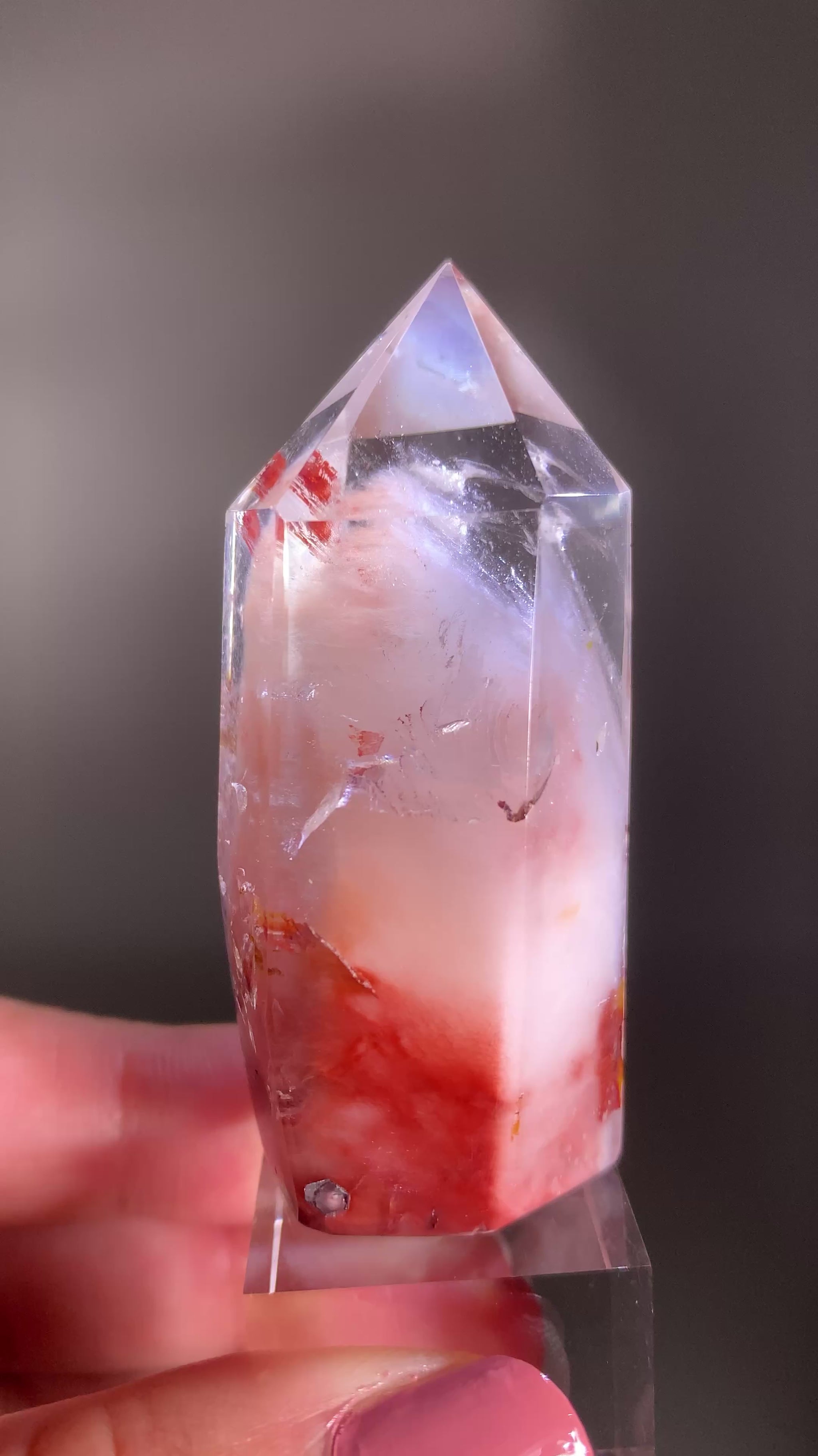This Rare Shiny Pink Amphibole Tower from Brazil features soft pink hues, silky inclusions, and multiple tiny manifestations nestled within. The polished surface enhances its inner shimmer, revealing layers of beauty and gentle energy. A stunning collector’s piece full of light and serenity.