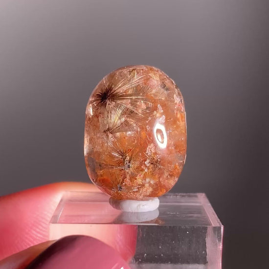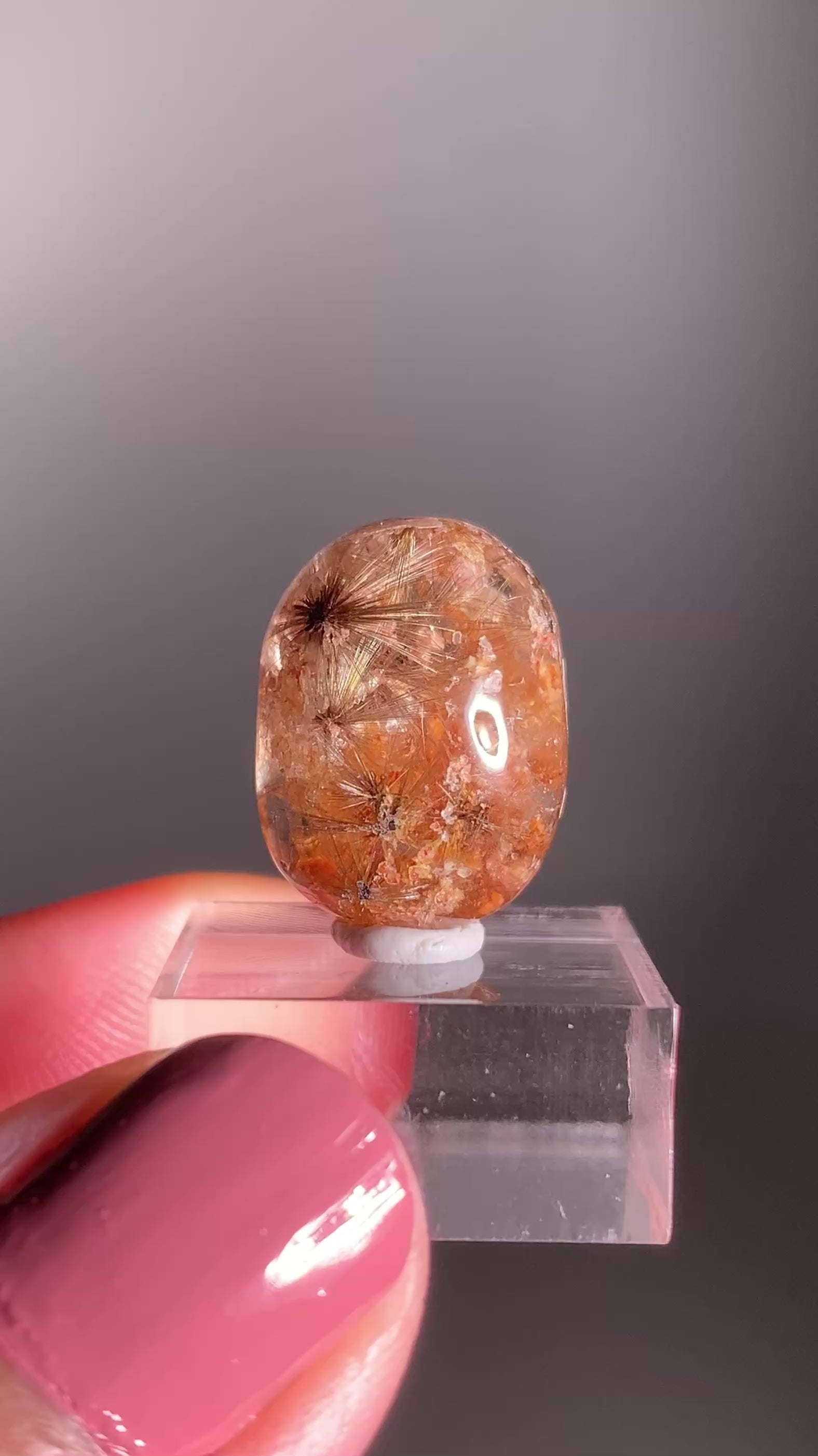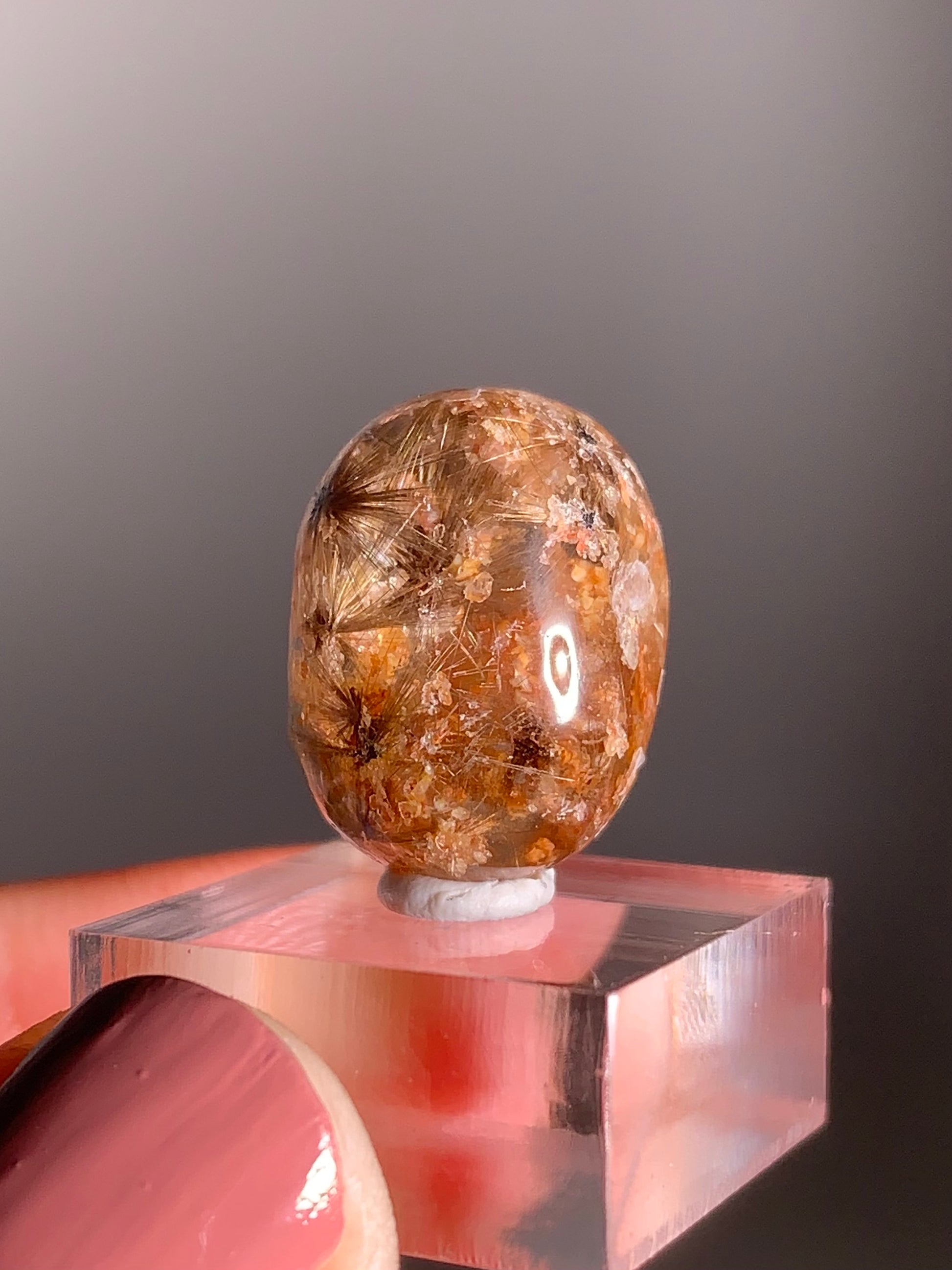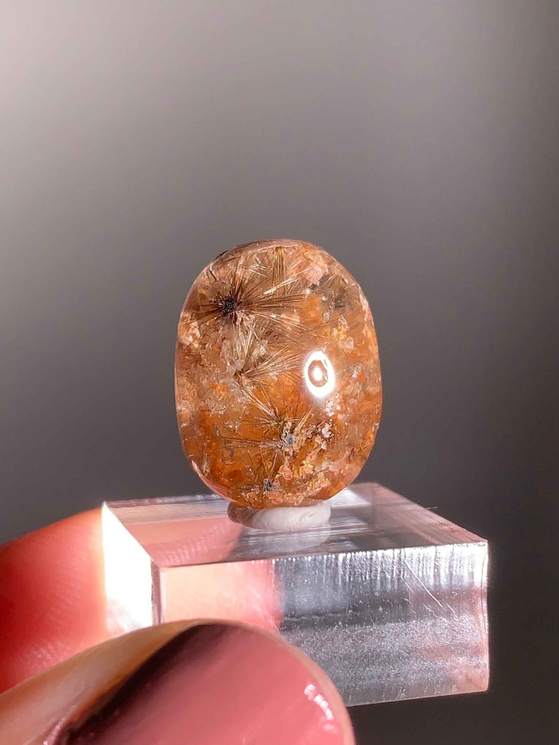 Rare Silver Star Rutile with Calcite in Quartz Cabochon | Polished Collector’s Gem from Brazil
