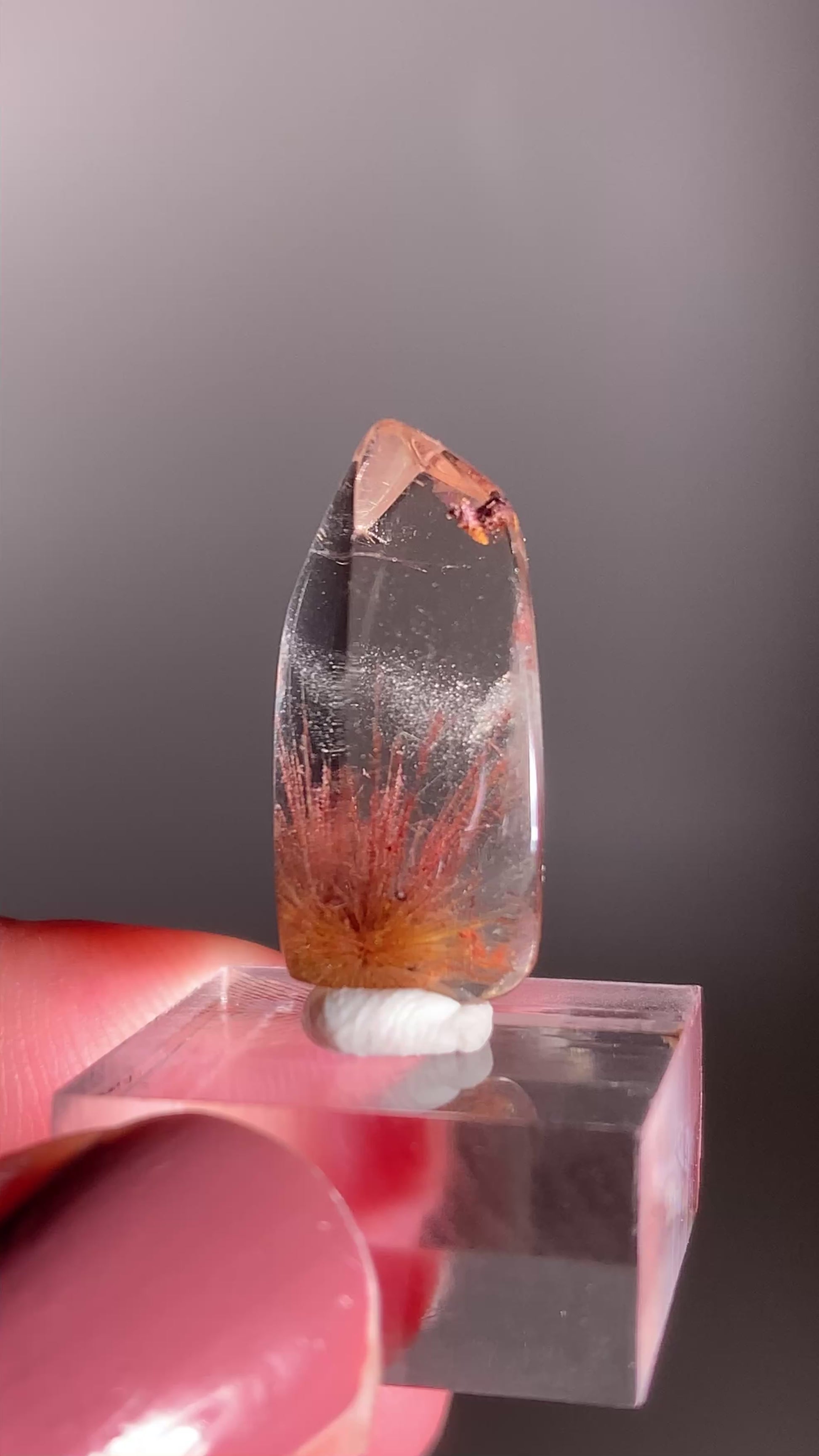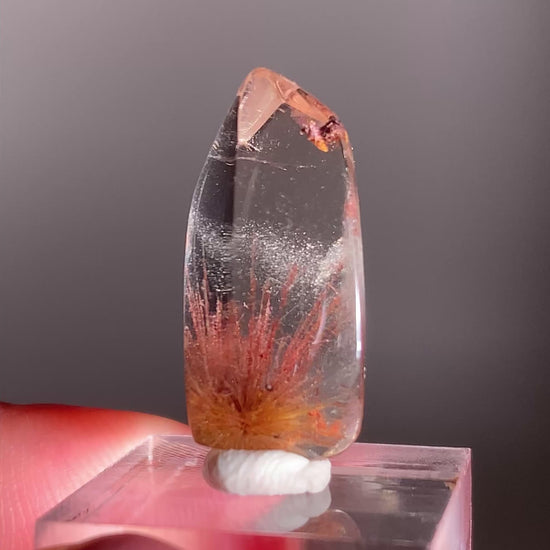 Rare Bicolor Fireworks Rutile in Red Copper & Gold Quartz Mini Gem from Brazil